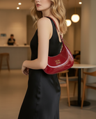 Нейният гланциран cherry red завършек привлича погледа, а компактната форма я прави идеална за ежедневно носене или вечерен аутфит.
