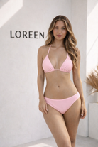 Blush Bloom е изключително нежен и женствен бански комплект, създаден за романтични летни моменти. Класическите триъгълни бикини в мек розов нюанс подчертават естествената красота на силуета, докато ефирният сет с флорален принт добавя лекота, елегантност и завършеност на визията.