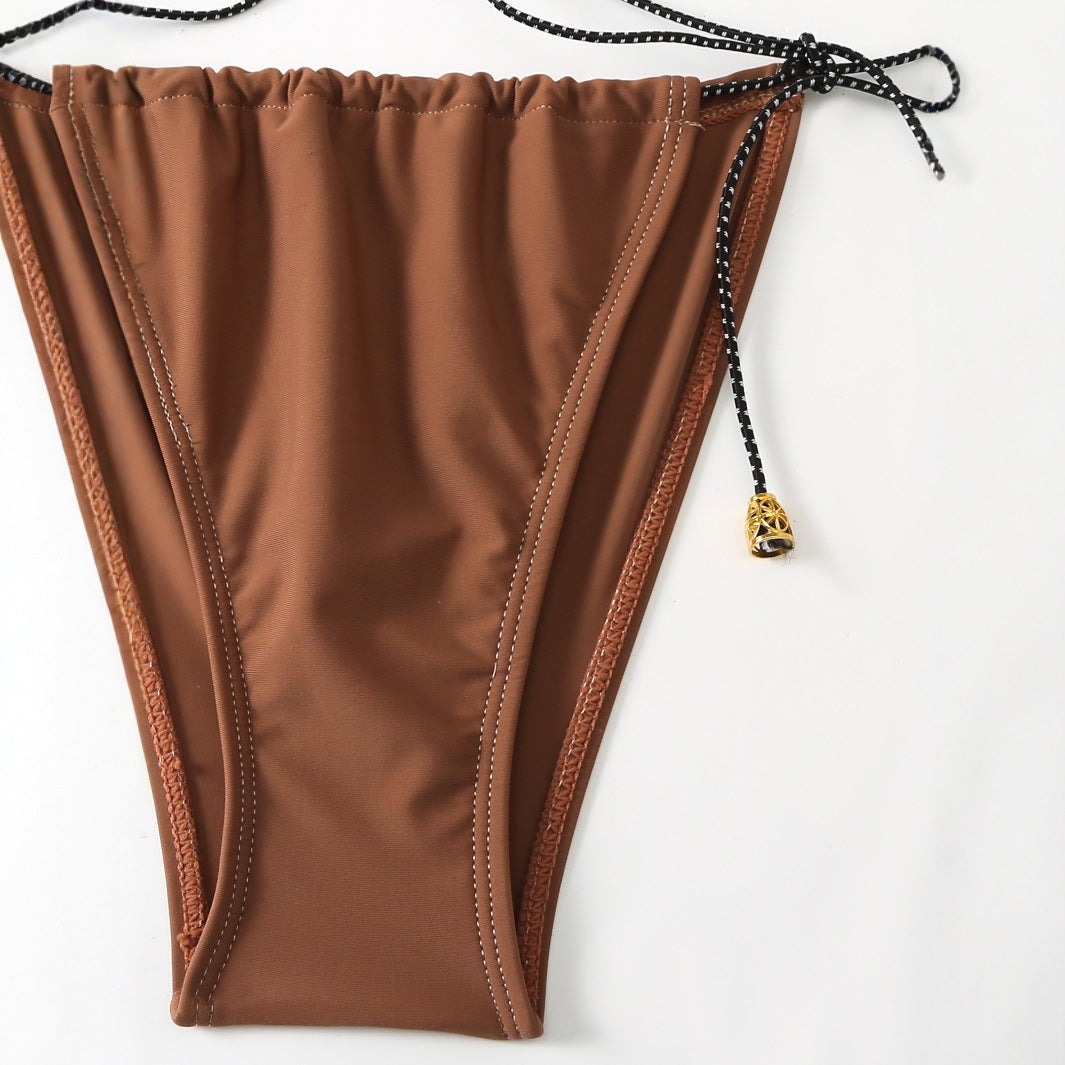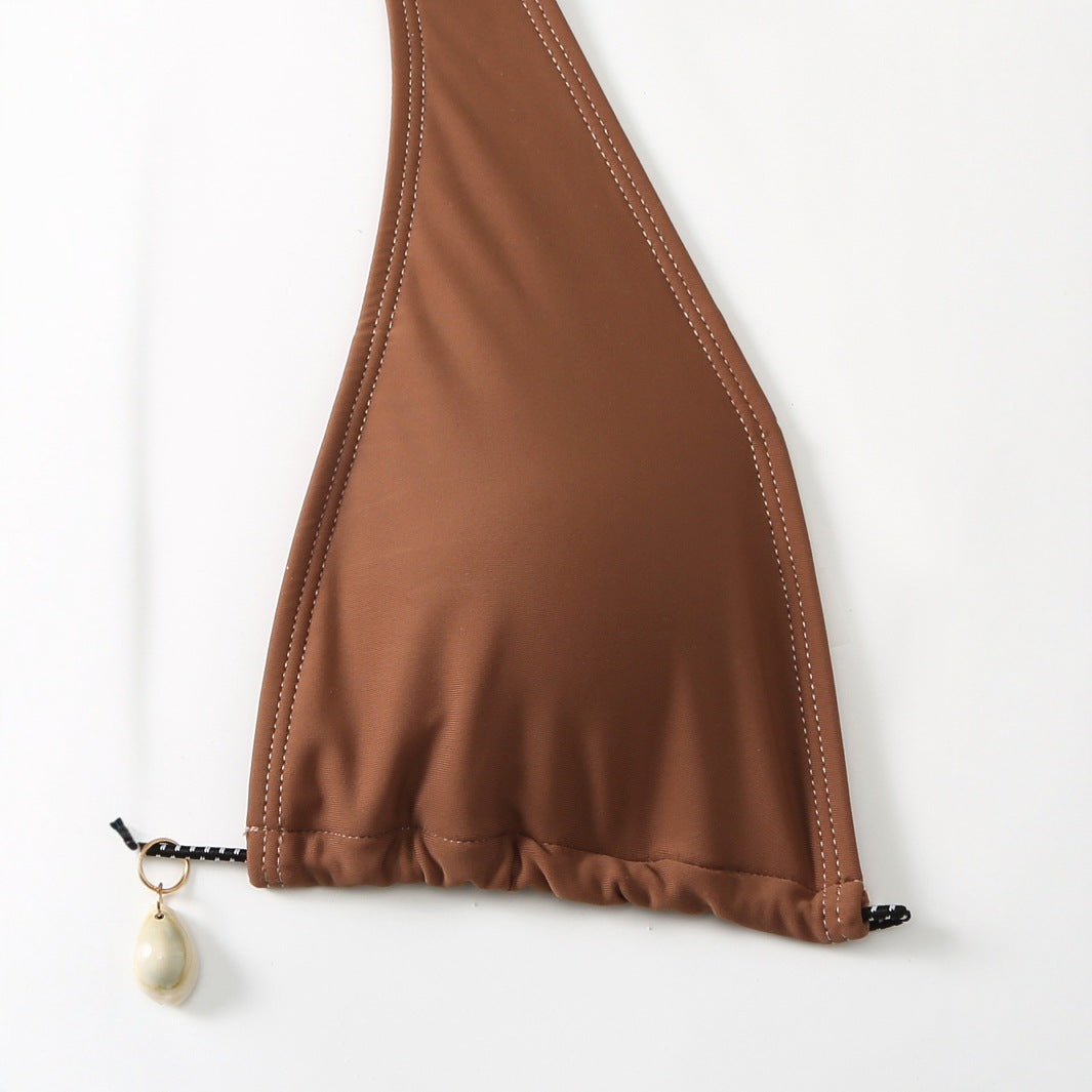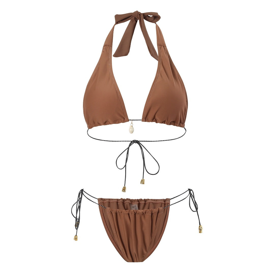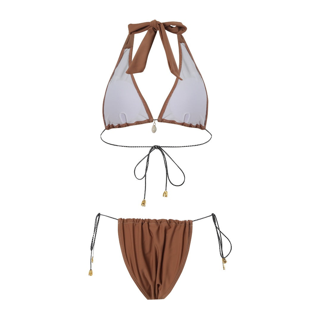 Стилен дамски бански от две части, изработен от висококачествена, бързосъхнеща материя. Осигурява удобство и перфектно прилягане, подчертавайки женствената фигура.