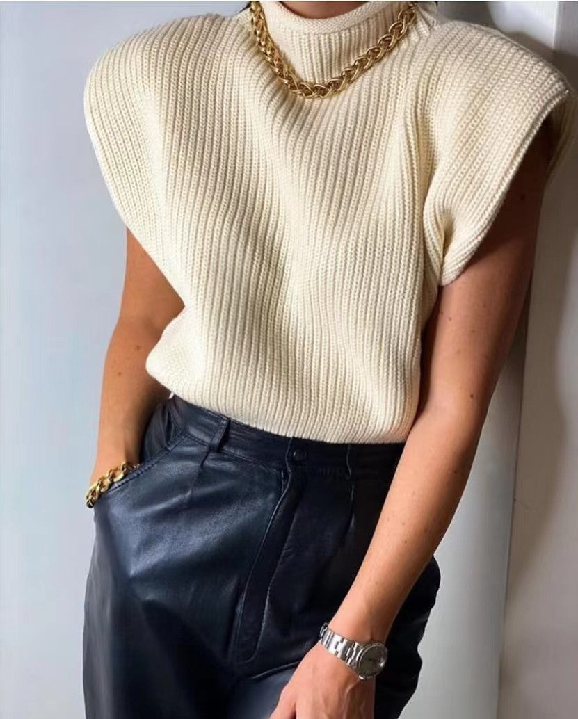 Особеност на този пуловер е отсъствието на ръкави, което го прави идеален за носене.