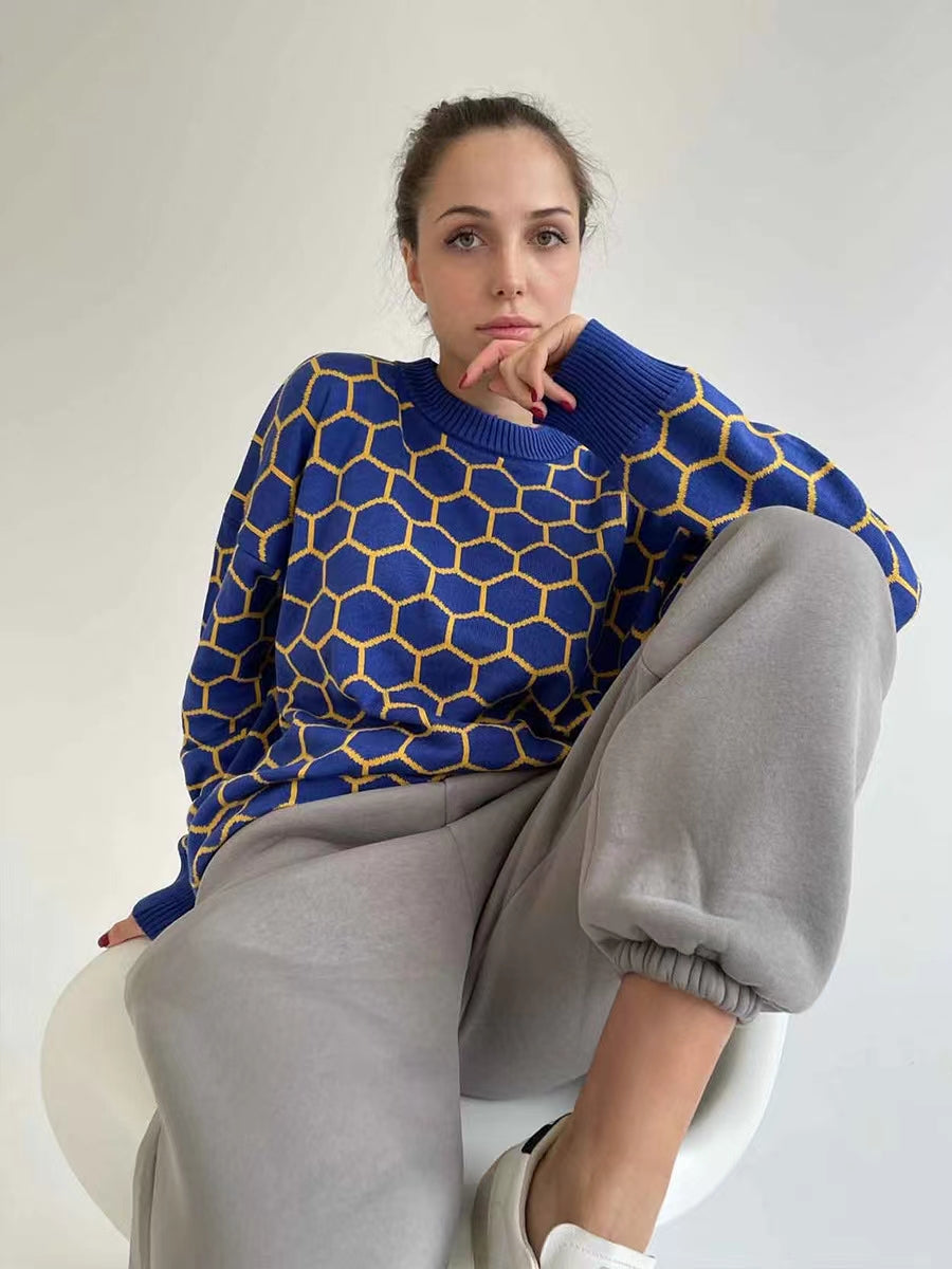 Този пуловер е с кръгло деколте, което придава класическа и непринудена визия, подходяща за различни поводи. Дизайнът му е свободен, което осигурява лекота и удобство при носене, като същевременно подчертава елегантен темперамент.