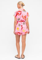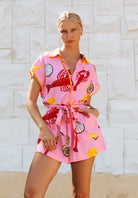 Стилен дамски гащеризон с оригинална апликация на червени раци, която добавя забавен и нестандартен акцент. Изработен от лека и удобна материя, той предлага комфорт през целия ден, докато уникалният дизайн привлича вниманието и придава изразителен и игрив стил. Идеален за хора, които обичат да се открояват със своята визия!