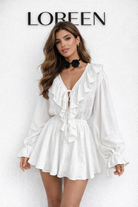 Елегантен дамски комплект от две части, състоящ се от риза с буф ръкави и V-образно деколте, съчетана с едноцветна плисирана пола с волани. Ризата придава лекота и стил, докато полата с воланите добавя женственост и движение. Перфектен избор за елегантна и модерна визия, подходящ за всякакви поводи.