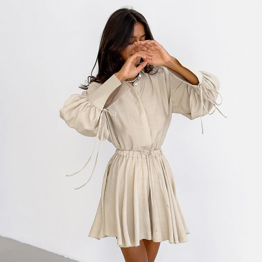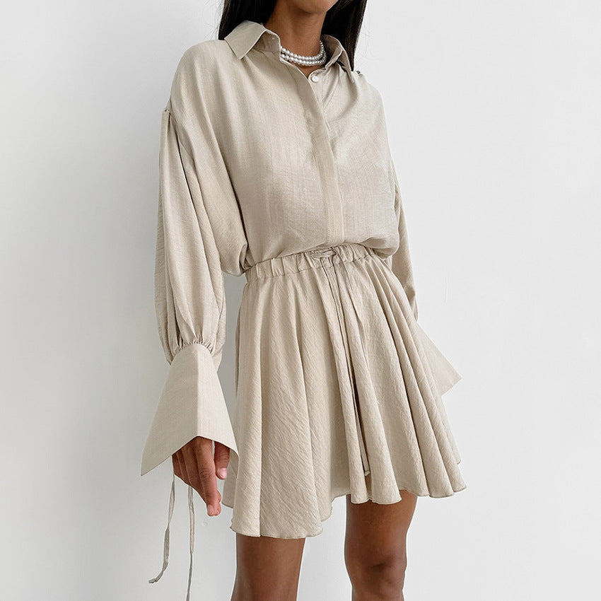 Ефирен дамски ленен комплект, включващ пола и риза, изработени от лека и дишаща материя. Осигурява комфорт и свобода на движение, идеален за топлите дни. Подходящ за елегантна и непринудена визия.