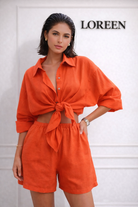 ✔ Дизайн: Комплект от широка риза с копчета и къси панталонки с ластик за пълен комфорт и небрежна елегантност