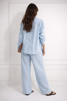 ✔ Дизайн: Свободна риза и широки панталони с висока талия – съчетание от небрежна елегантност и комфорт