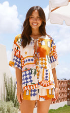 Открийте перфектния летен стил с нашия дамски комплект от две части с свежи летни мотиви! Леката и дишаща материя осигурява комфорт в топлите дни, а модерният дизайн подчертава вашата елегантност.