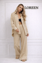✔ Дизайн: Небрежна риза и свободен панталон с връзки за регулиране, създаващи непринудена и модерна визия