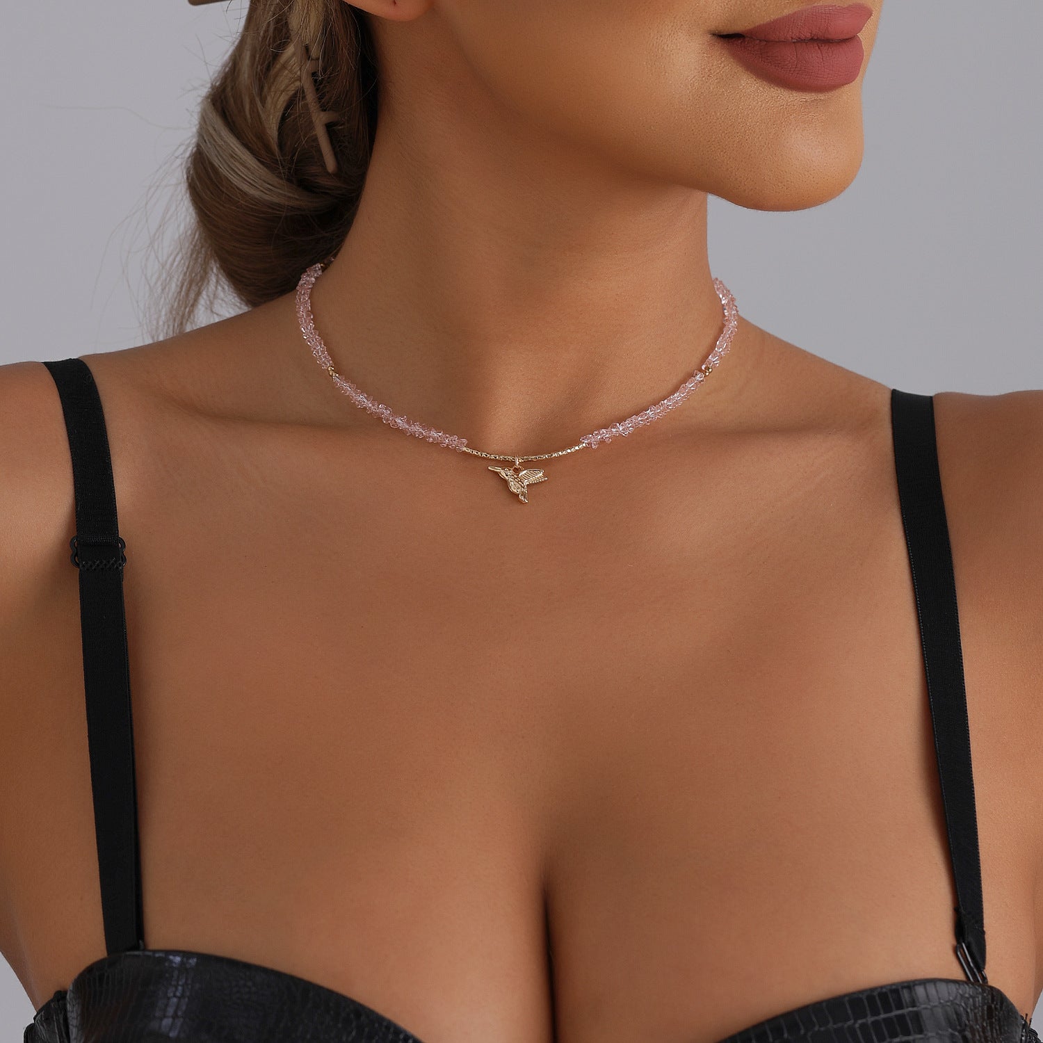 Лекото розово сияние и изтънченият дизайн правят това колие универсално – подходящо както за ежедневие, така и за елегантни вечери.