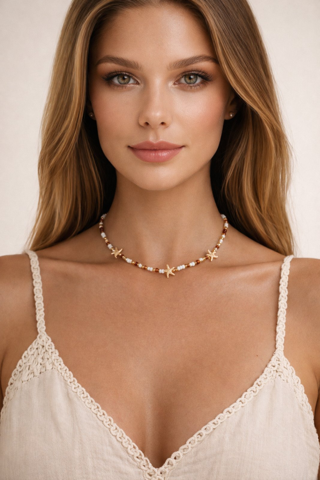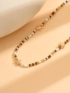 Étoile de Mer е фино колие, вдъхновено от нежната красота на морето. Декоративните морски звезди в златист акцент се съчетават с деликатни перли и топли земни тонове, създавайки усещане за лятна лекота и естествена елегантност.