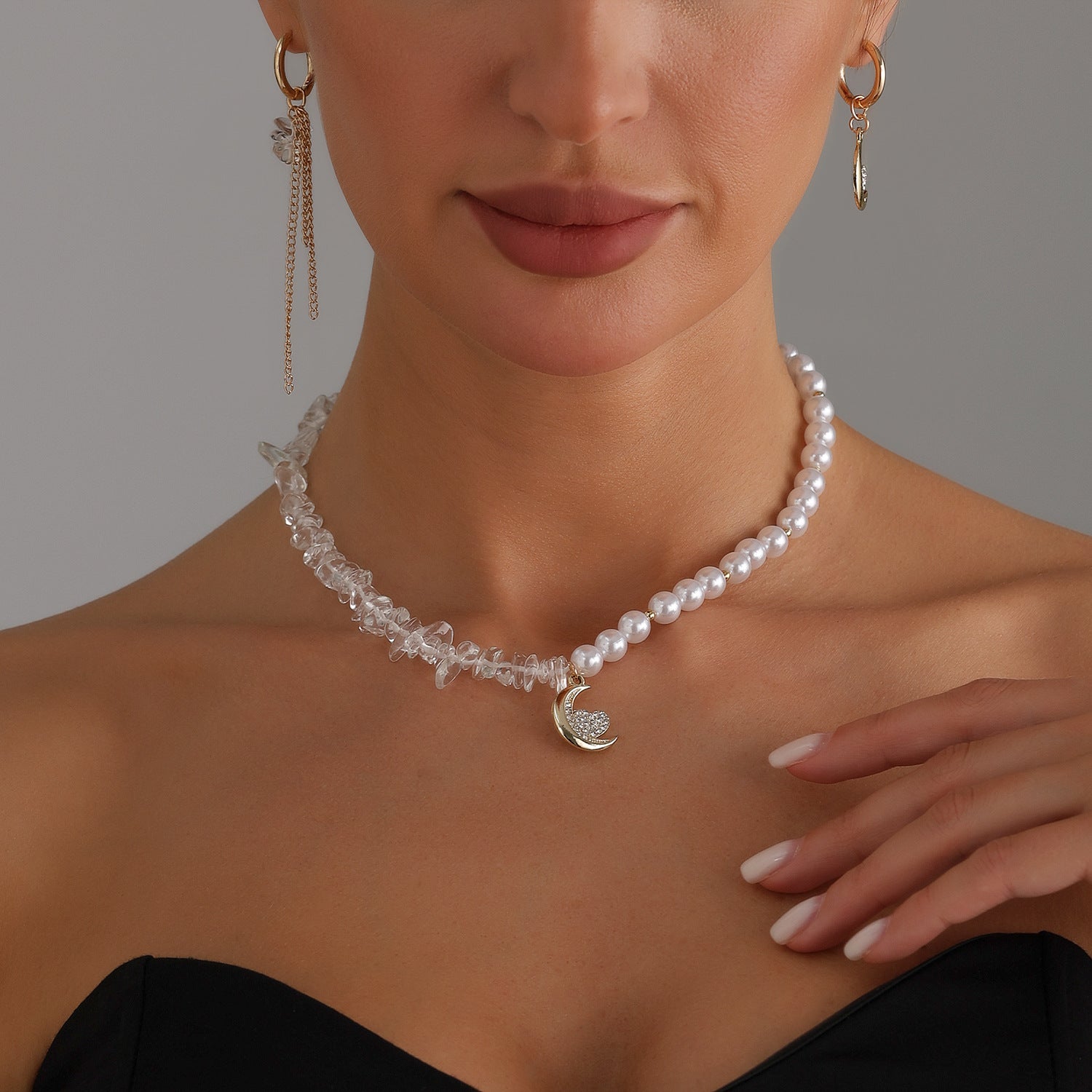 Moonlight Pearl е бижу, вдъхновено от нежната светлина на луната и вечната елегантност на перлите. Изработено от фини перли и прозрачни кристали, то съчетава нежност и сияние в перфектна хармония.