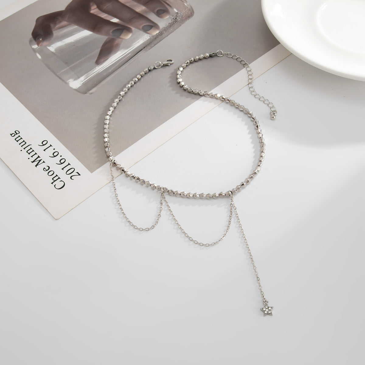 Stella Flow е фино сребристо колие, което съчетава минимализъм и движение. Деликатната верижка с нежни падащи елементи завършва със звезден акцент, придаващ усещане за лекота, блясък и нощна елегантност.