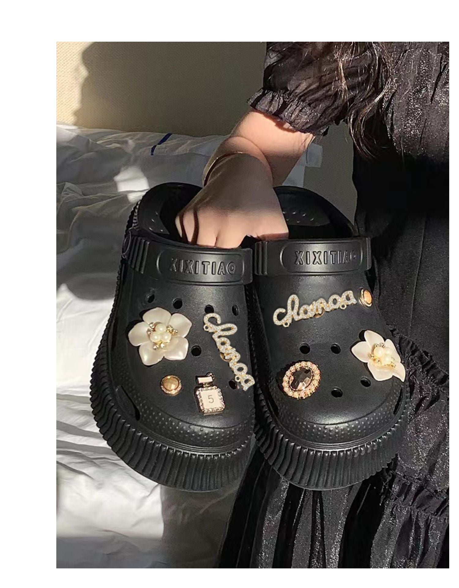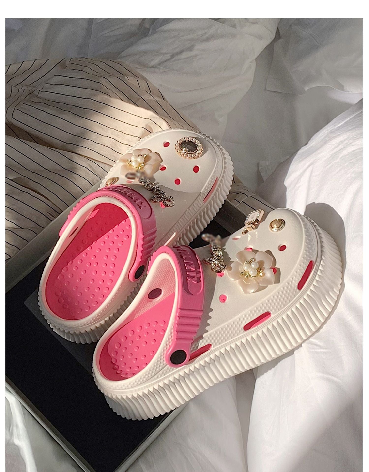 Тези чехли се отличават с изискан дизайн и дебела подметка, която осигурява допълнителна височина и стабилност. Изработени с антиплъзгаща подметка, те предлагат сигурност и комфорт при всяка стъпка, независимо дали сте на плажа, на разходка в града или на вечерно излизане.