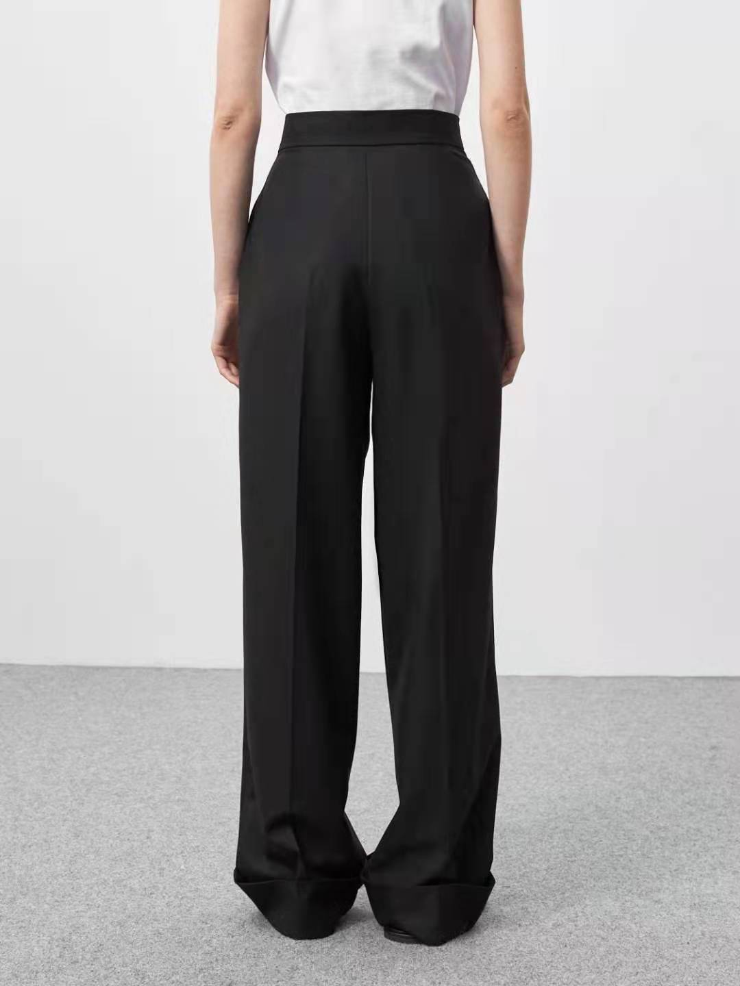 Панталоните са с висока талия, която осигурява комфортно прилягане и подчертава фигурата. Високата талия допринася за изтънчен силует и може да се носи с различни горнища за създаване на разнообразни визии.