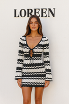Стилна дамска плетена плажна рокля в елегантно черно-бяло съчетание. Лека и ефирна, с женствен силует, идеална за плажа или летни разходки. Подчертава естествената красота с модерна и изкусителна визия.