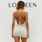 Секси дамска плетена плажна рокля с V-образно деколте, връзки и открит гръб. Лека и ефирна, идеална за летните дни, придава стилен и привлекателен вид както на плажа, така и край басейна.