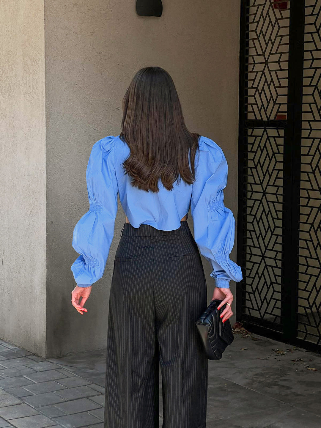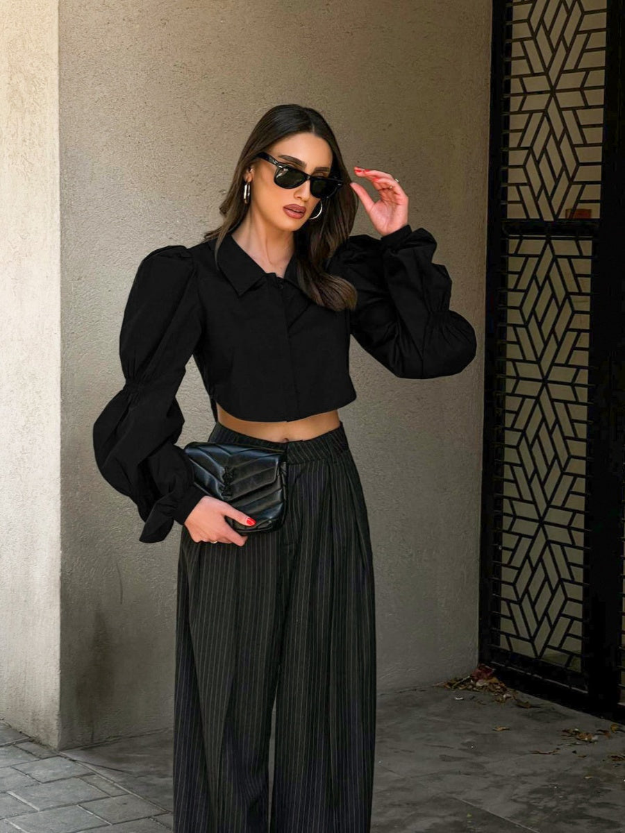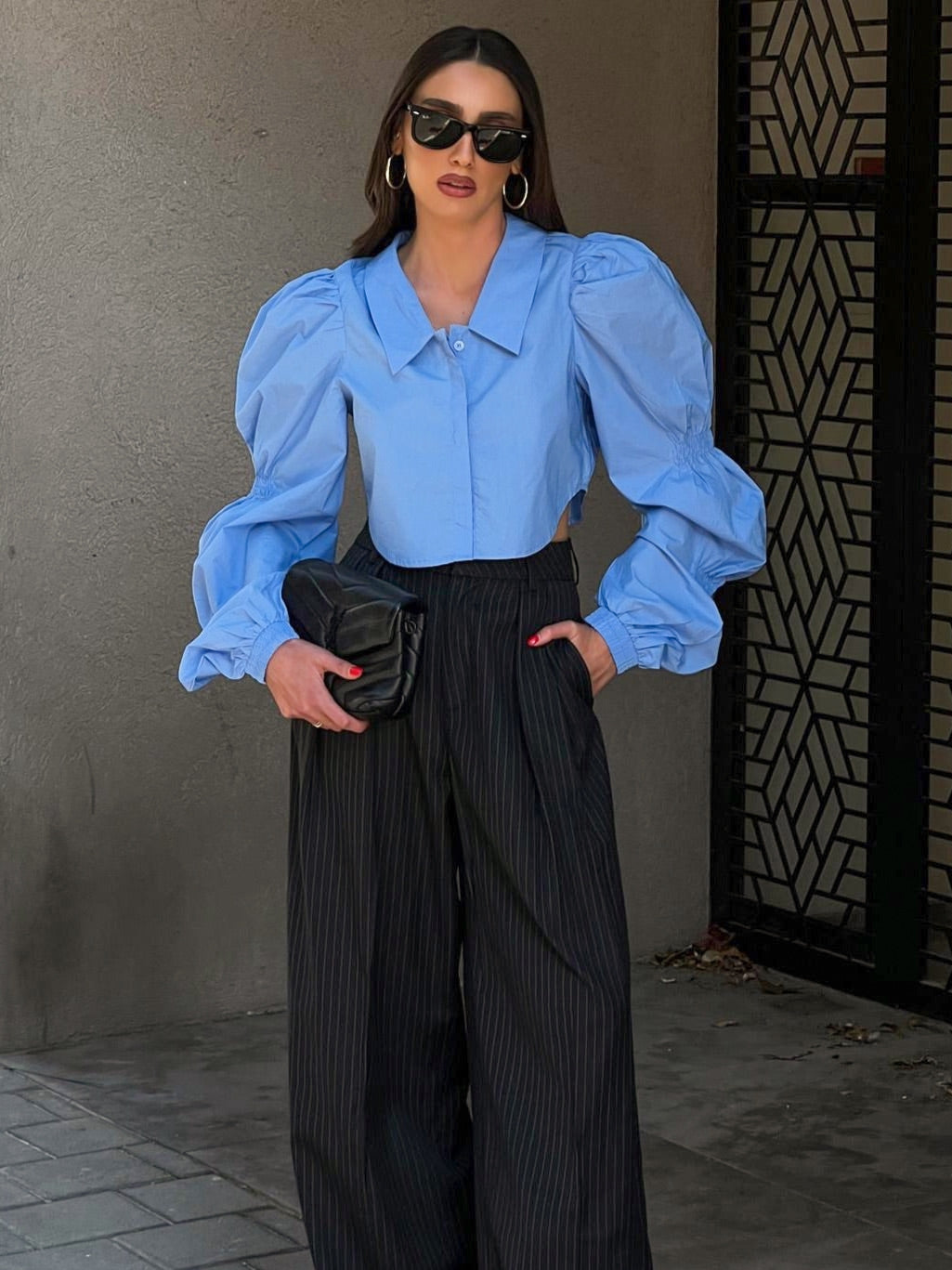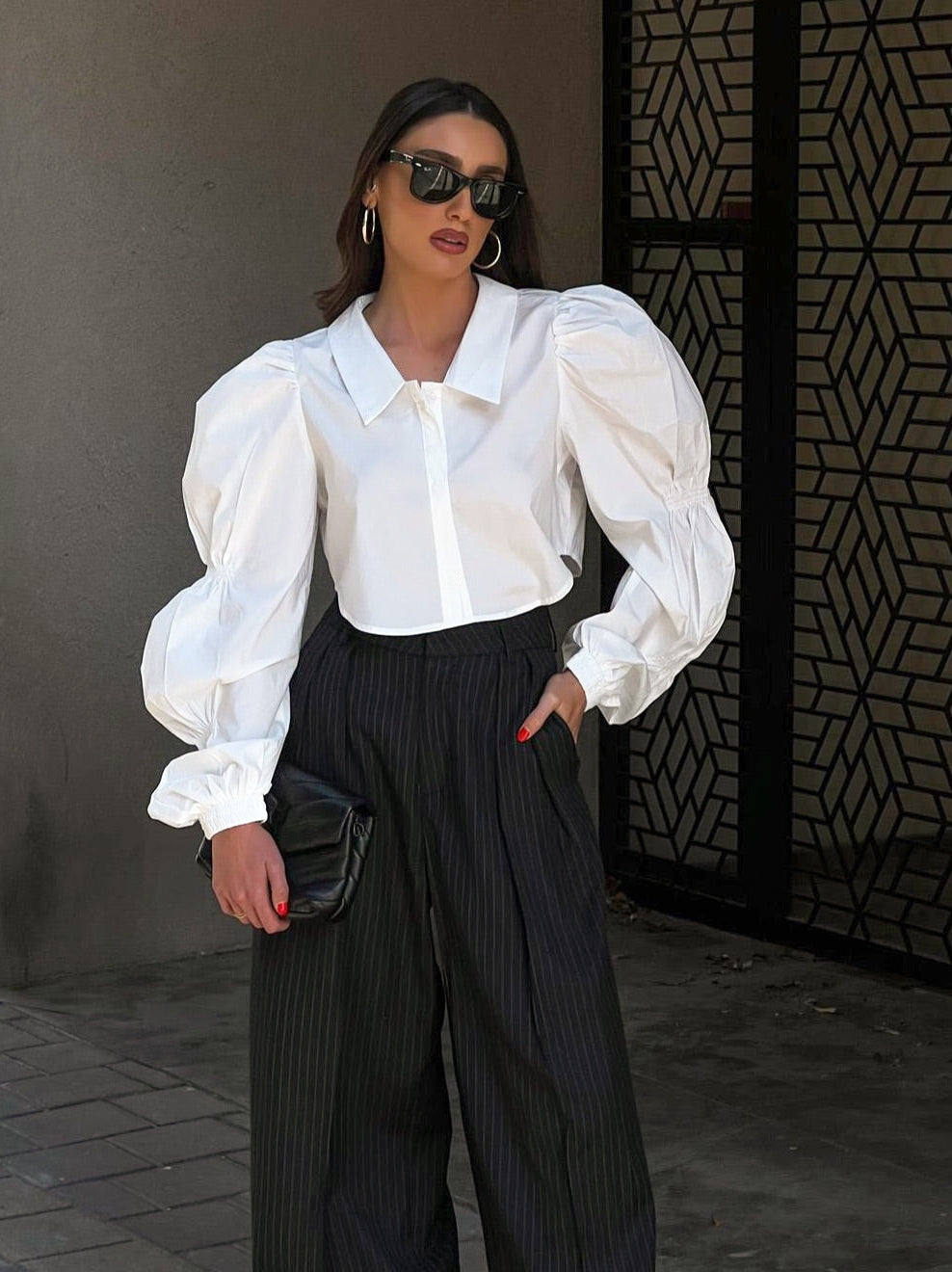 Представяме ви нашата стилна риза с балонести ръкави, която съчетава елегантност и сексапил. Балонестите дълги ръкави придават на ризата уникален и изискан вид, докато сексапилната кройка я прави универсална и подходяща за всякакви облекла.