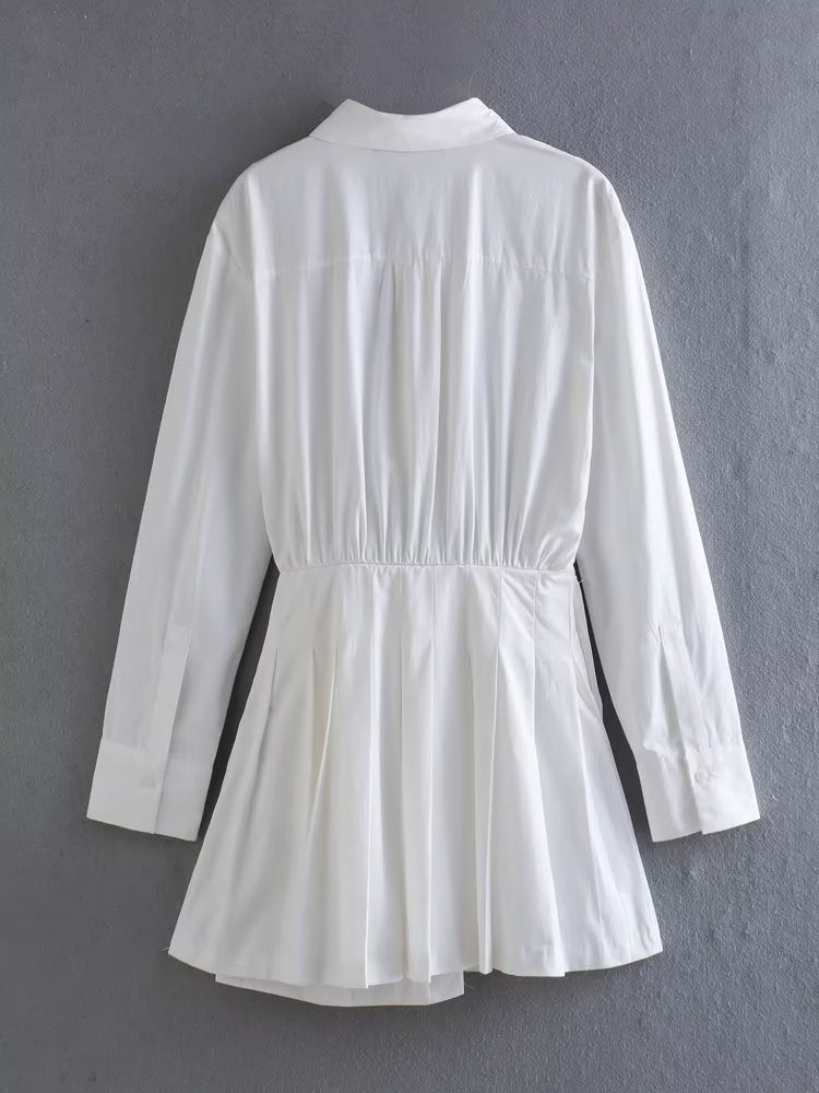 Дизайнът включва класическа кройка и единичен ред копчета, което му придава шик и елегантност. Роклята е наличен в цветове бял и син, което придава разнообразие в стила.