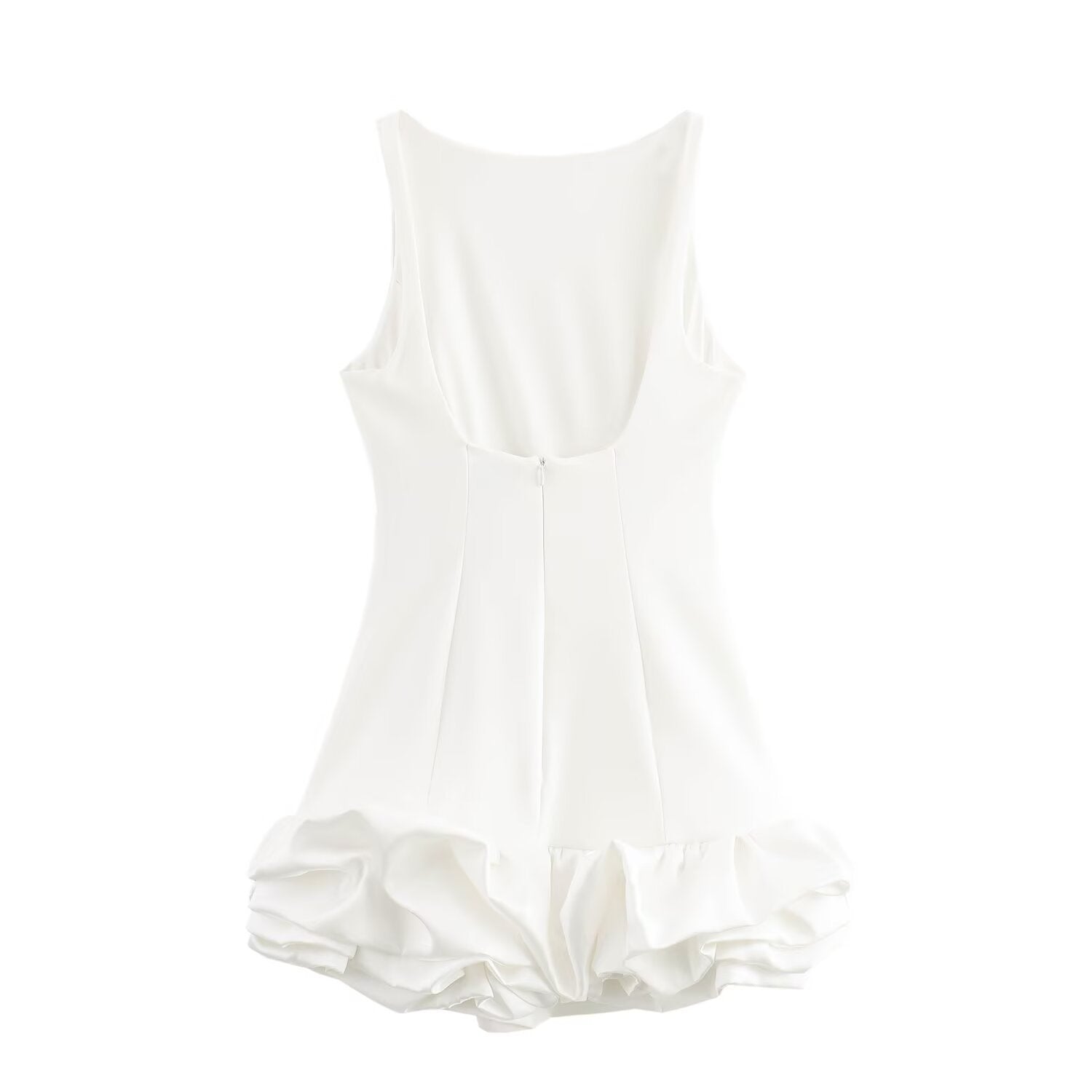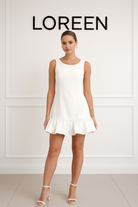 Добави доза елегантност и женствен чар към всеки повод с тази изискана къса рокля в бял цвят и циклама. Моделът впечатлява със своя чист силует, който подчертава фигурата, а нежният волан в края придава ефирност и луксозно излъчване.