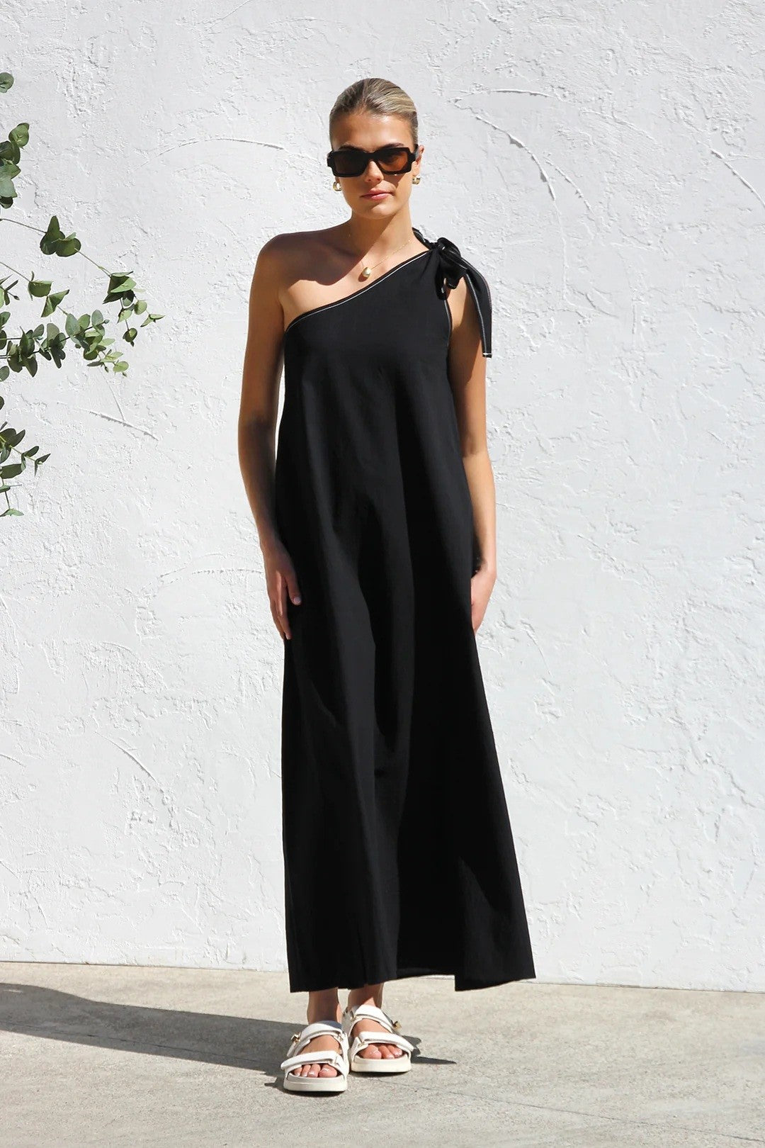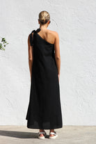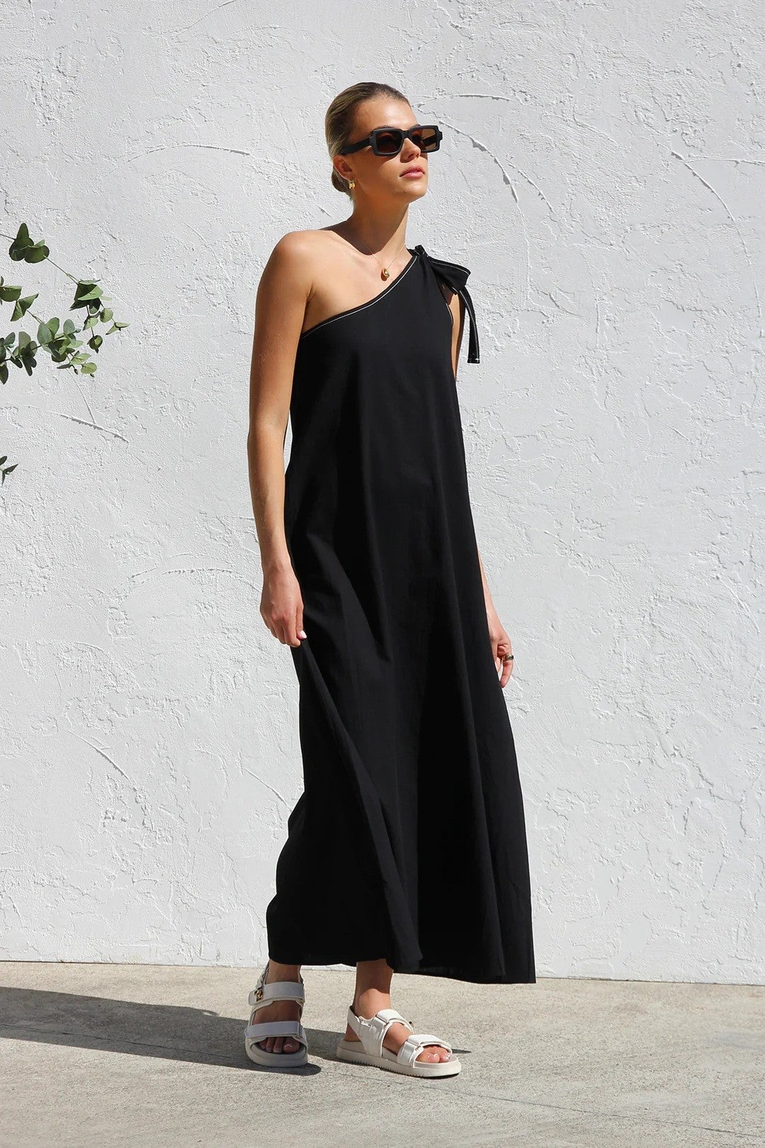 Елегантна дамска дълга рокля с едно рамо, изработена от ефирна и лека материя. Придава нежен и изискан силует, идеална за официални събития или стилни вечерни излизания.