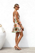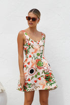 Свежа дамска рокля с красиви плодови мотиви, изработена от лека и удобна материя. Жизнерадостният дизайн придава игрив и летен вид, а елегантната кройка подчертава силуета. Идеален избор за слънчеви дни и небрежна елегантност.