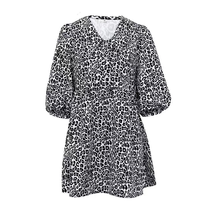 Роклята предлага куклено деколте, което добавя изисканост и женственост към визията. Съчетава се перфектно със забележителния печат на леопард, който придава доза дивина и смелост на външния ви вид.