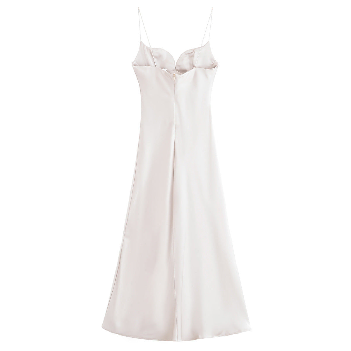Финото деколте и плавната линия създават усещане за лекота, елегантност и естествена женственост. Перфектен избор за специални поводи, летни вечери, романтични събития или минималистична визия с луксозно излъчване ✨