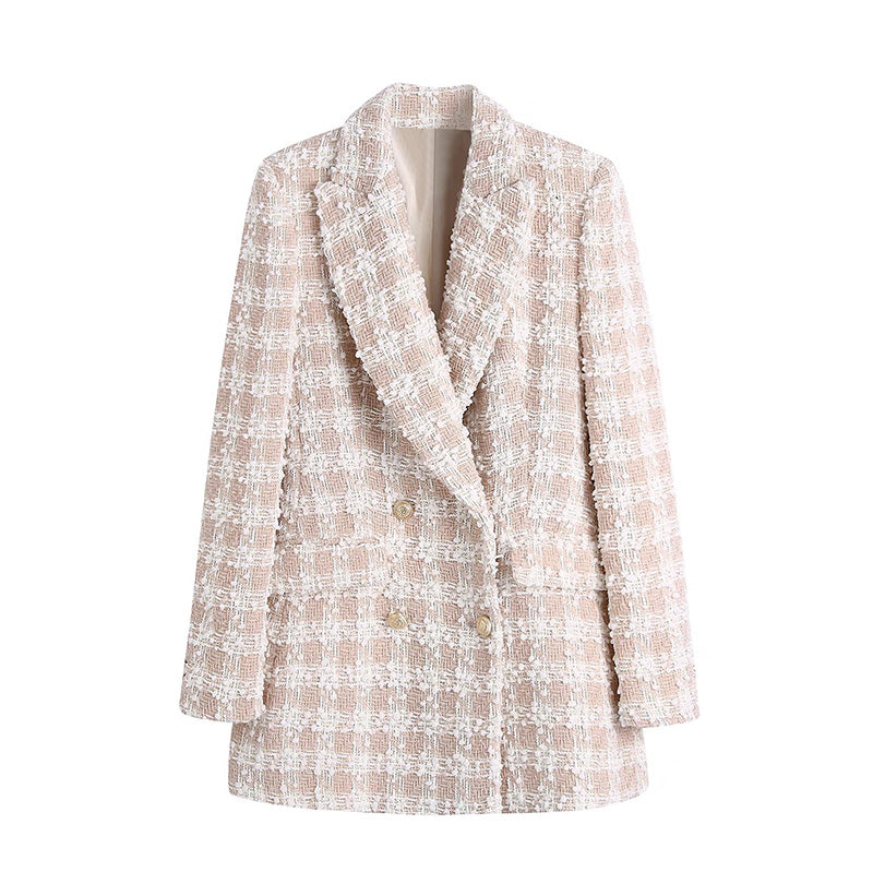 Текстурата на платът е каре, като добавя интерес и изтънченост към визията. Сакото е перфектно за ежедневието, осигурявайки уникален и стилен вид.