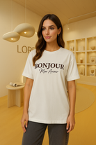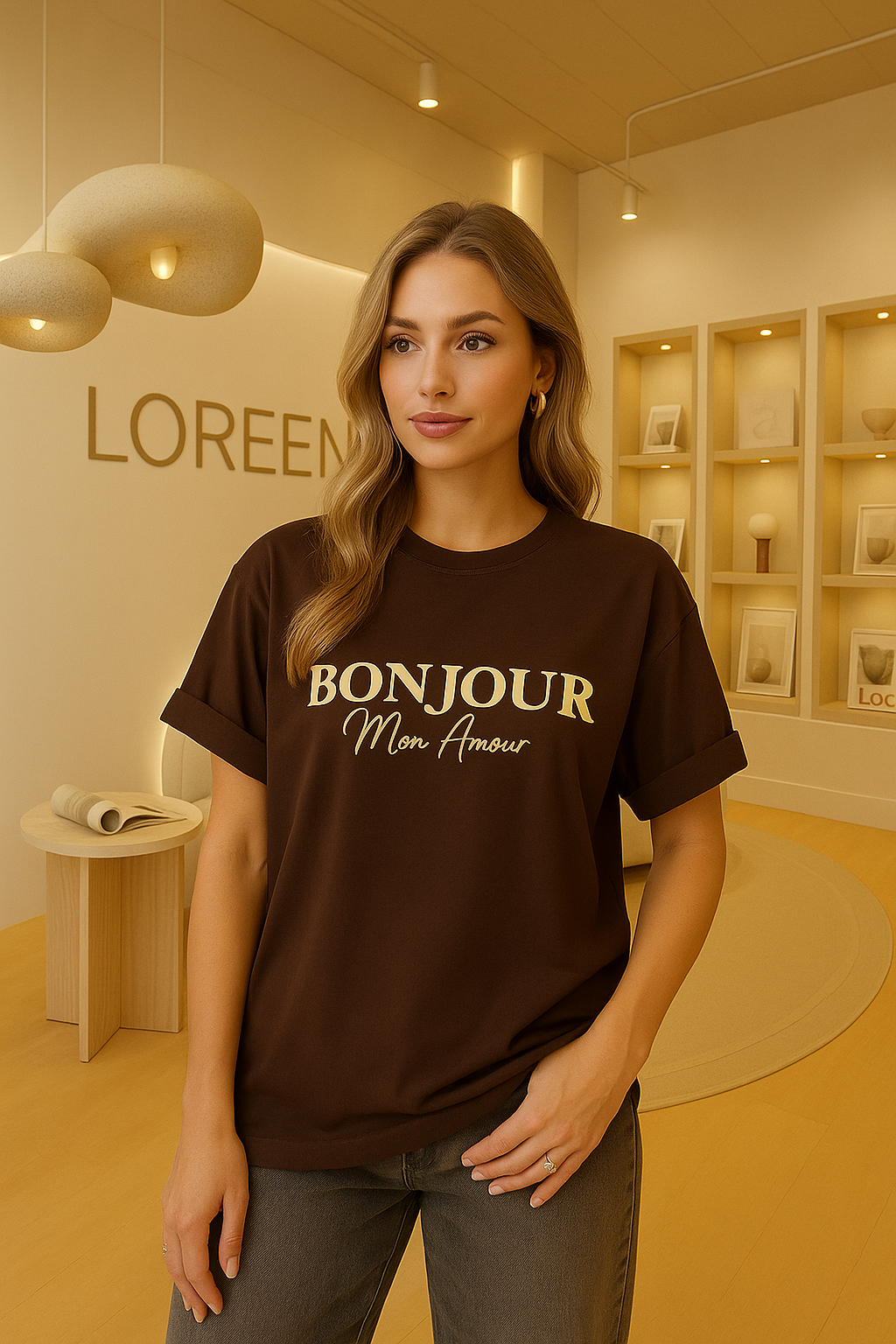 Внеси френски чар в гардероба си с нашата Bonjour Mon Amour тениска – нежна, стилна и универсална.
