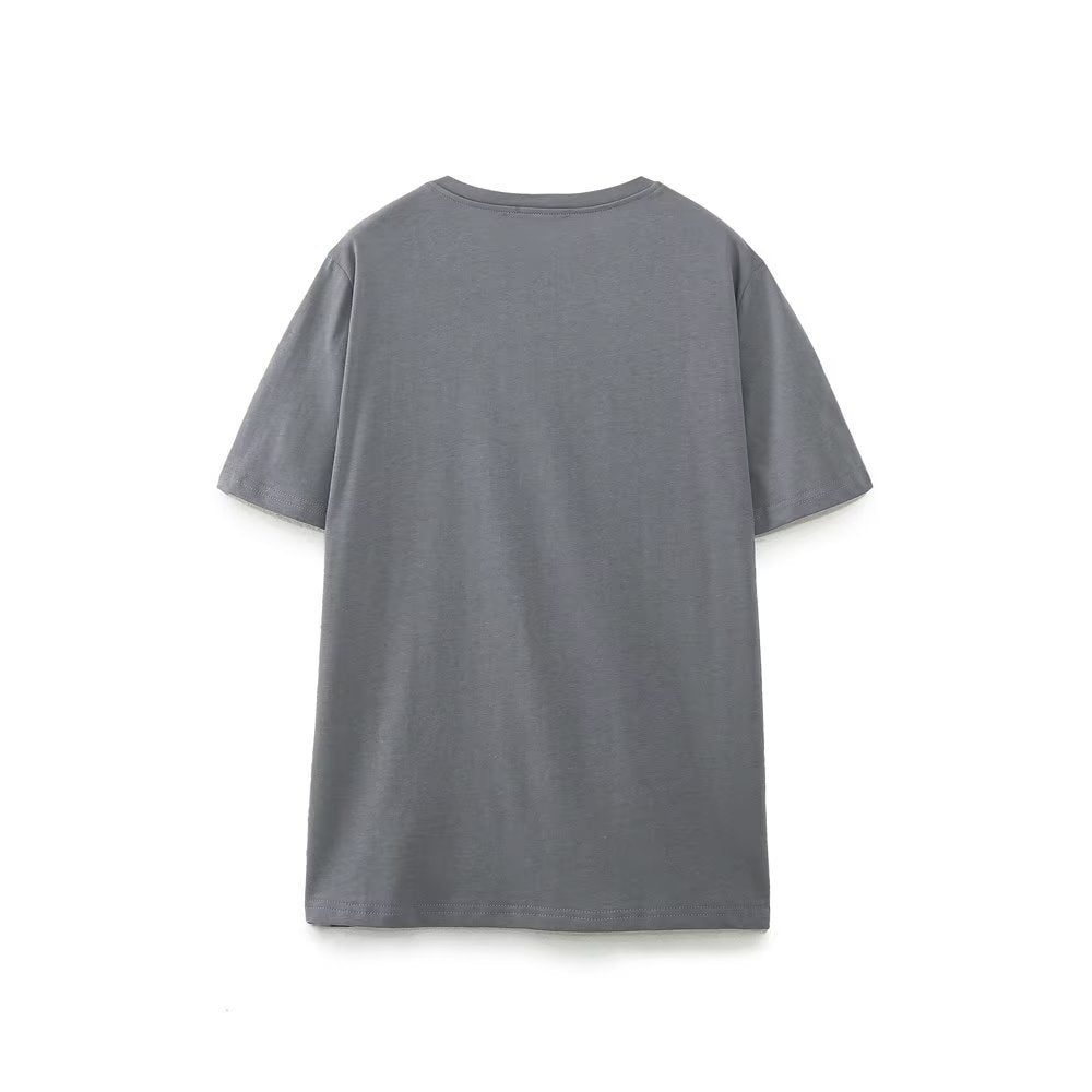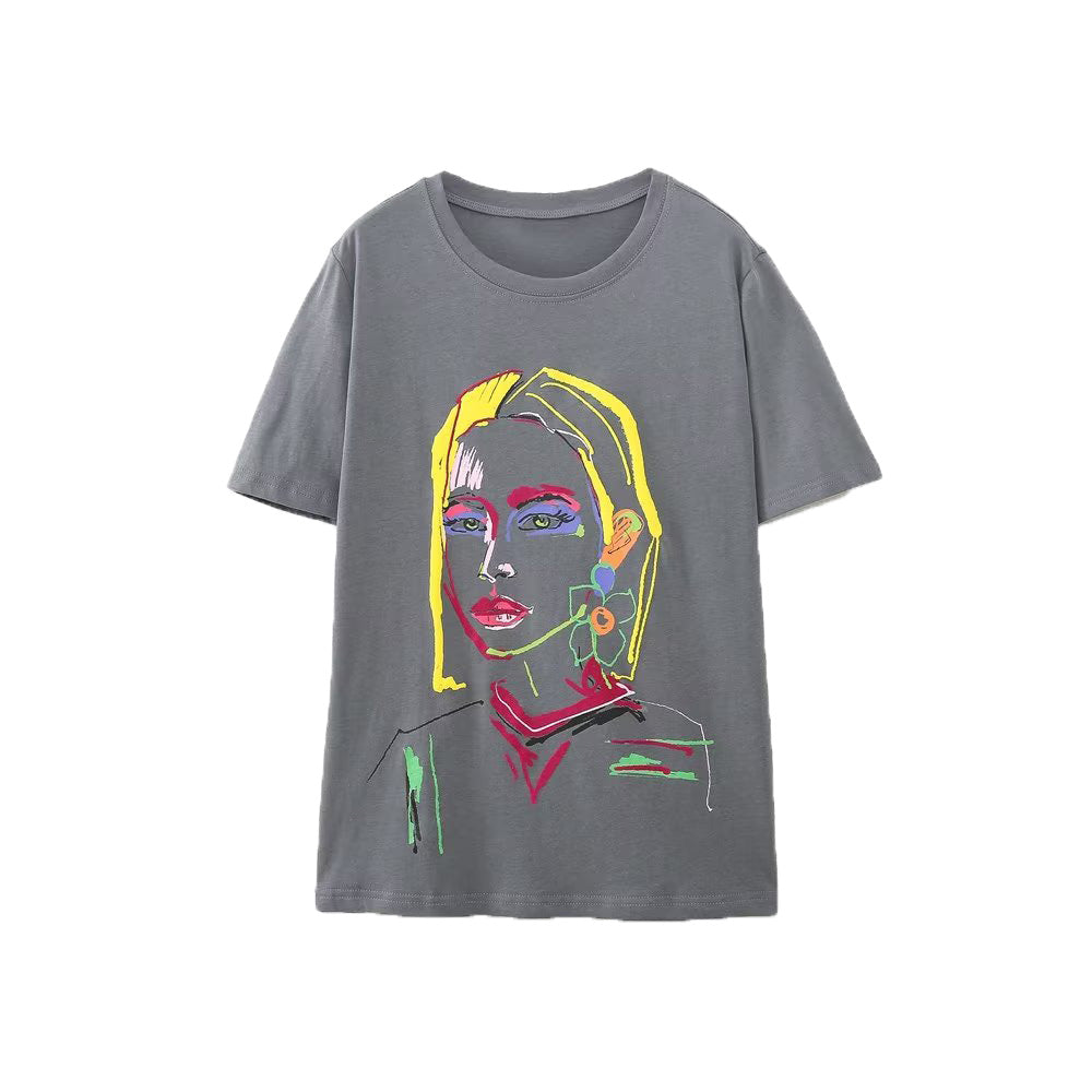 Останете готини и шик в тази модерна дамска тениска, изработена от висококачествен памук за максимален комфорт. Привличащият погледа щампа отпред придава забавен и модерен привкус, идеален за добавяне на нотка усет към вашите ежедневни тоалети. Съчетайте го с дънки или шорти за небрежен, но стилен ансамбъл.
