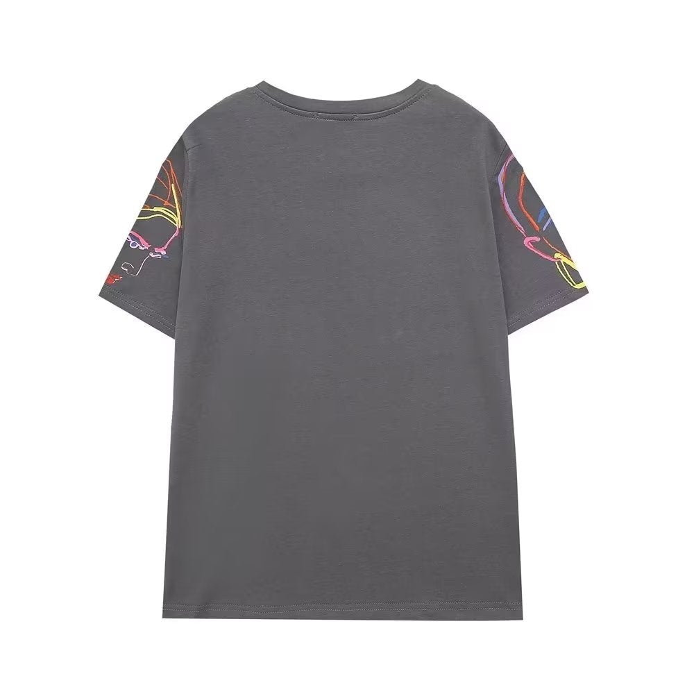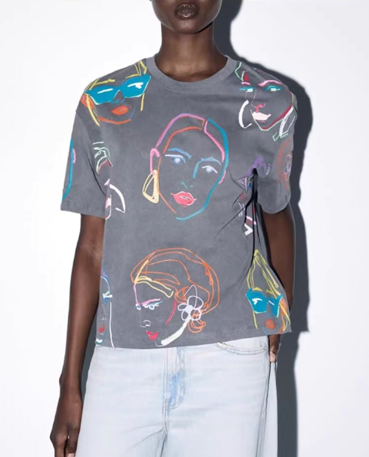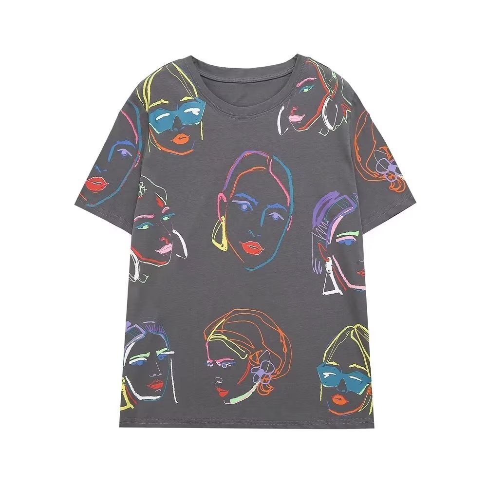 Останете готини и шик в тази модерна дамска тениска, изработена от висококачествен памук за максимален комфорт. Привличащият погледа щампа отпред придава забавен и модерен привкус, идеален за добавяне на нотка усет към вашите ежедневни тоалети. Съчетайте го с дънки или шорти за небрежен, но стилен ансамбъл.