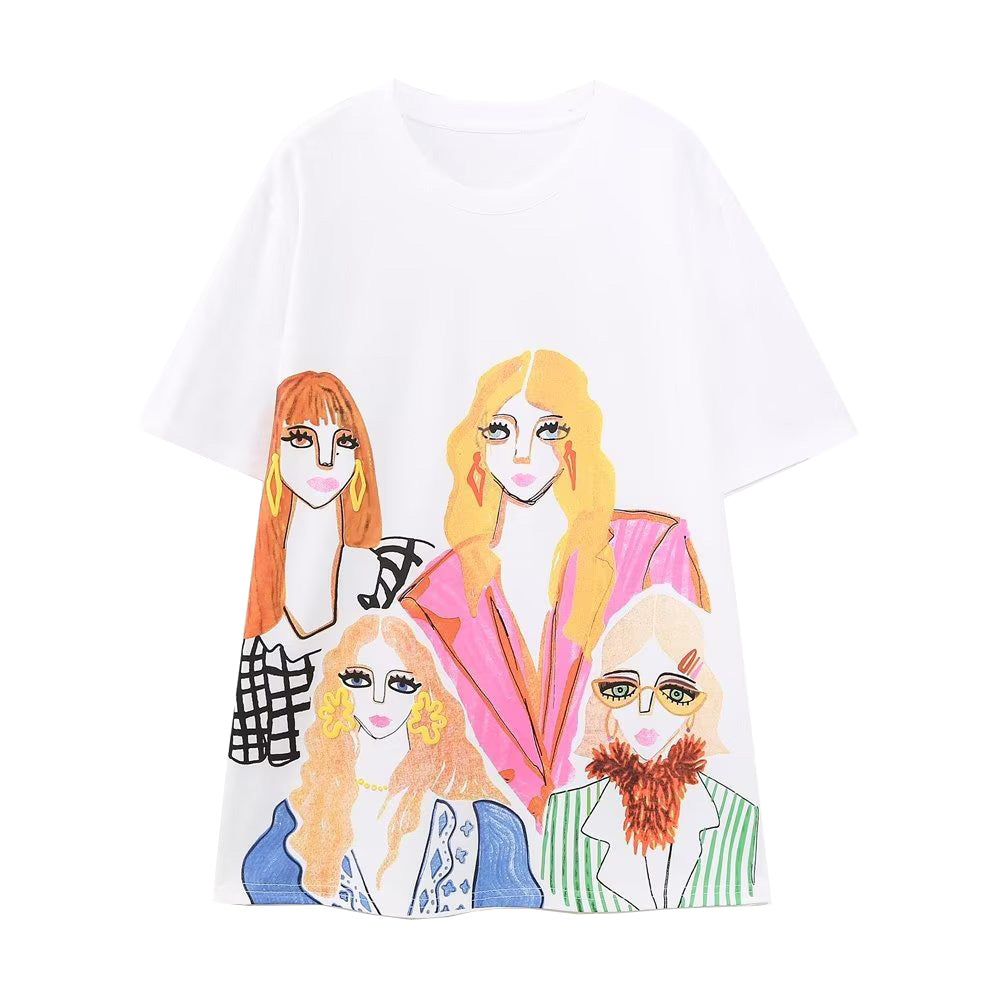 Останете готини и шик в тази модерна дамска тениска, изработена от висококачествен памук за максимален комфорт. Привличащият погледа щампа отпред придава забавен и модерен привкус, идеален за добавяне на нотка усет към вашите ежедневни тоалети. Съчетайте го с дънки или шорти за небрежен, но стилен ансамбъл.