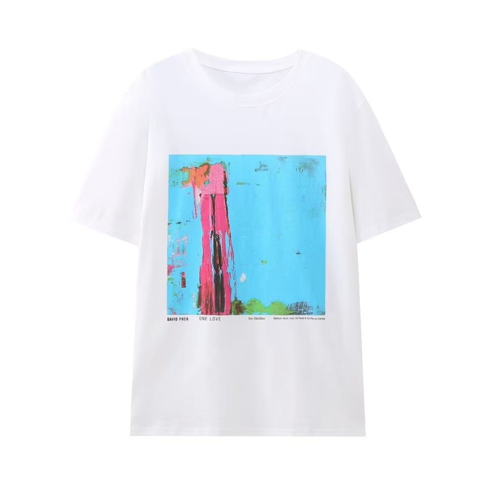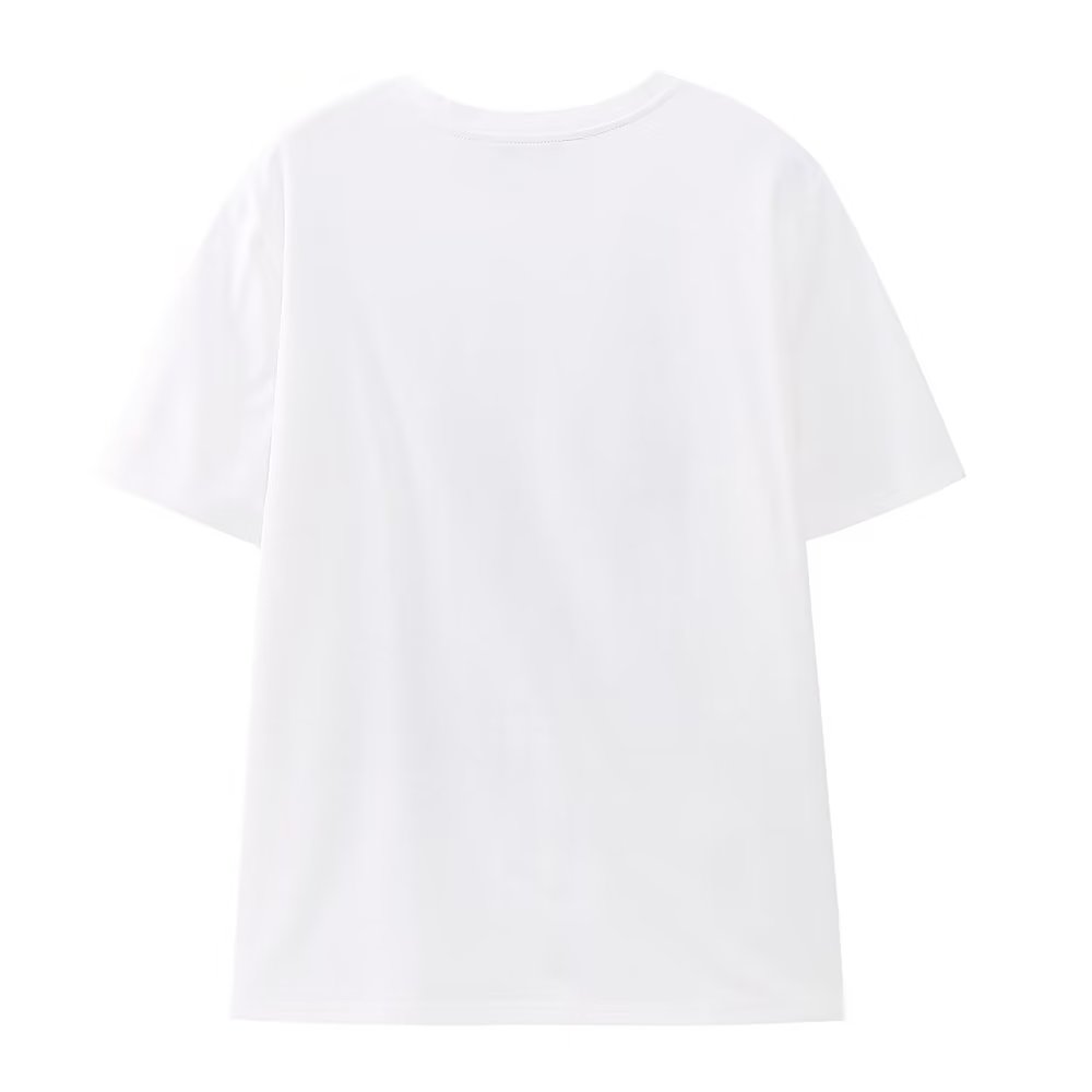 Останете готини и шик в тази модерна дамска тениска, изработена от висококачествен памук за максимален комфорт. Привличащият погледа щампа отпред придава забавен и модерен привкус, идеален за добавяне на нотка усет към вашите ежедневни тоалети. Съчетайте го с дънки или шорти за небрежен, но стилен ансамбъл.
