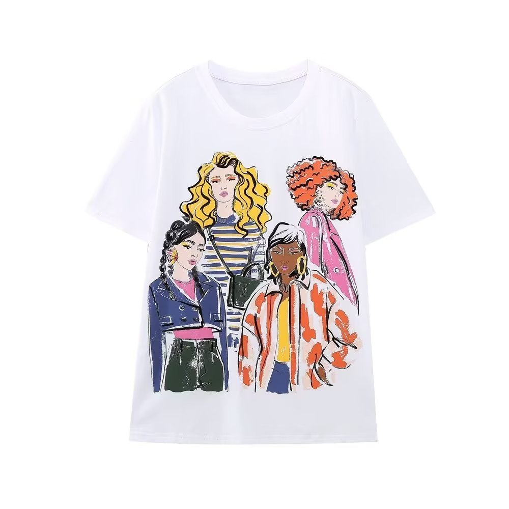Останете готини и шик в тази модерна дамска тениска, изработена от висококачествен памук за максимален комфорт. Привличащият погледа щампа отпред придава забавен и модерен привкус, идеален за добавяне на нотка усет към вашите ежедневни тоалети. Съчетайте го с дънки или шорти за небрежен, но стилен ансамбъл.