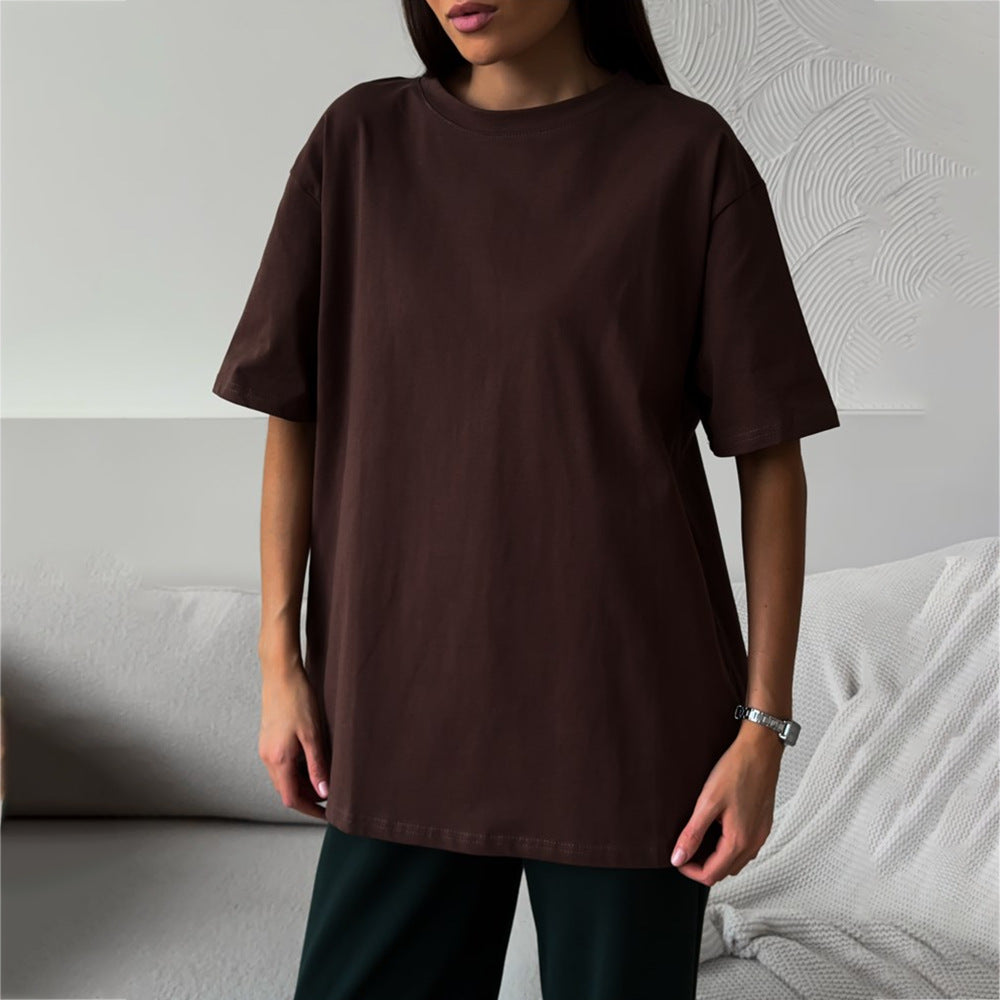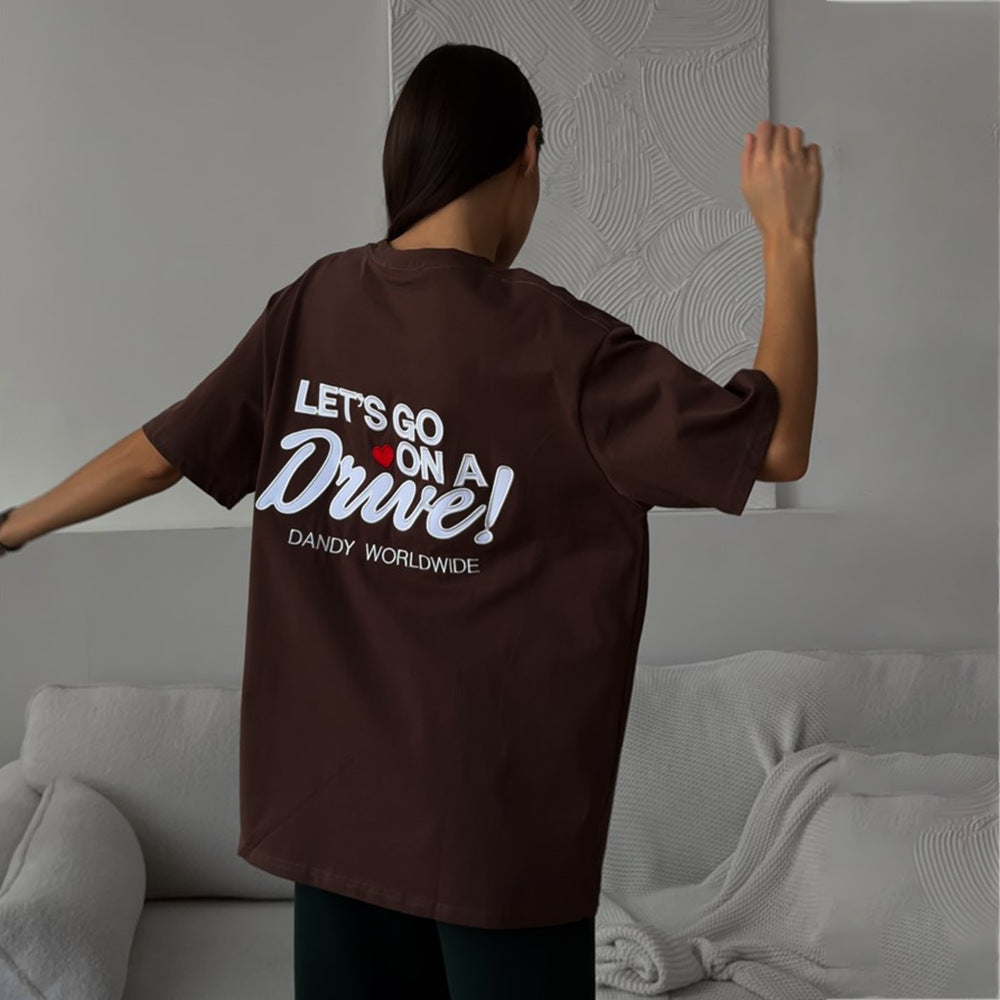 Стилна овърсайз дамска тениска с щампа, съчетаваща комфорт и модерен вид. Изработена от мека и дишаща материя, с широка кройка, която осигурява свобода на движение. Универсален модел, подходящ за ежедневието, лесно се комбинира с дънки, шорти или клин за небрежна и актуална визия.