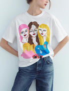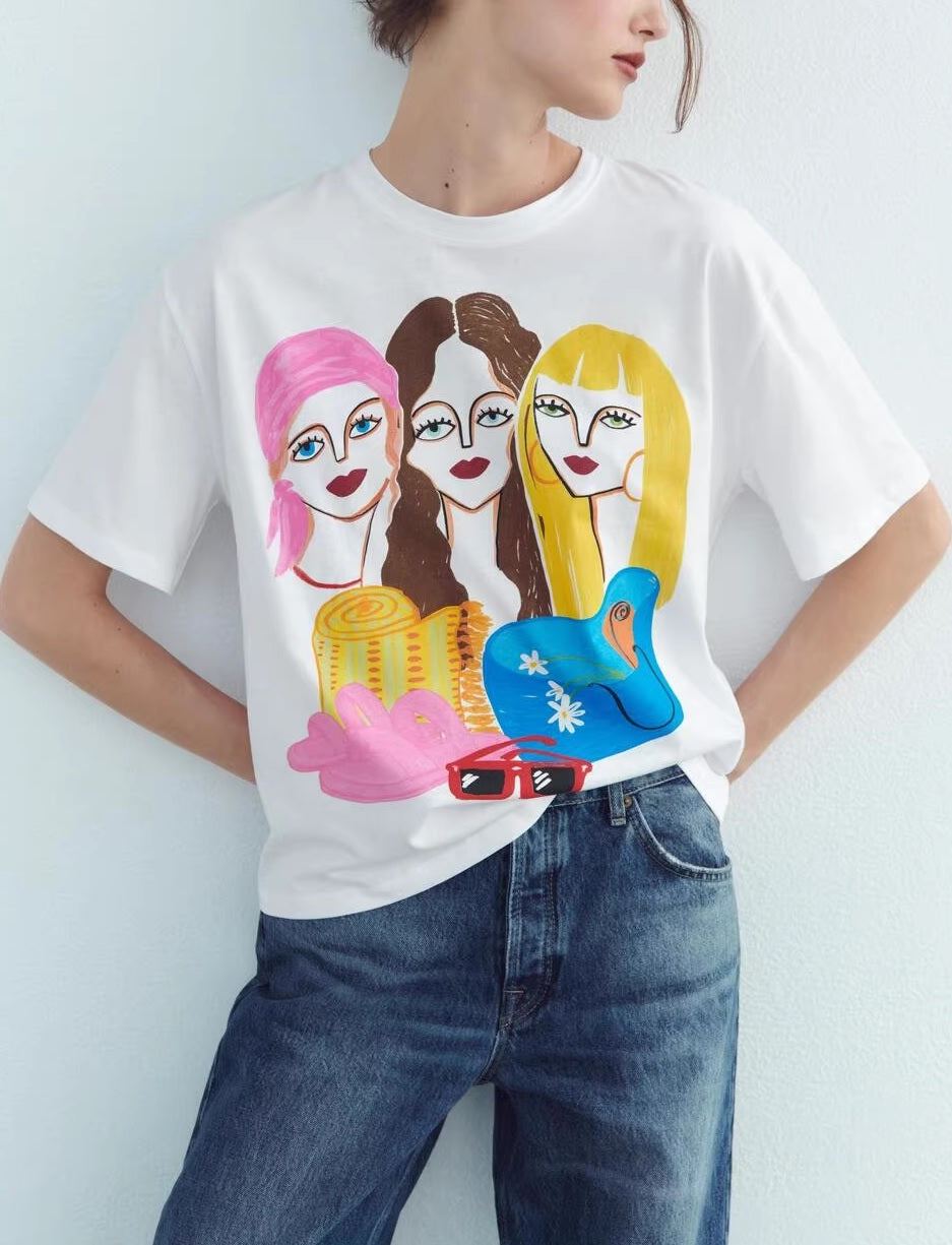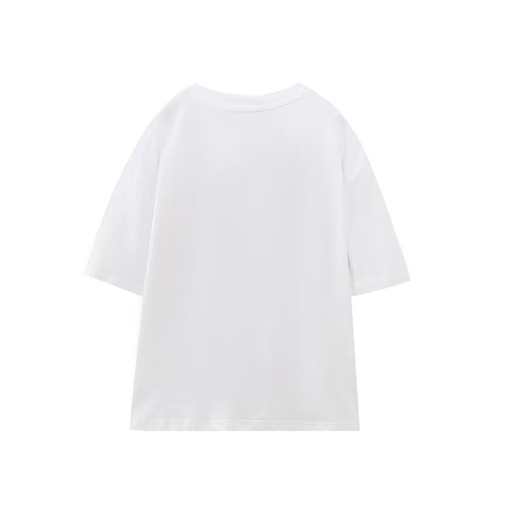 Останете готини и шик в тази модерна дамска тениска, изработена от висококачествен памук за максимален комфорт. Привличащият погледа щампа отпред придава забавен и модерен привкус, идеален за добавяне на нотка усет към вашите ежедневни тоалети. Съчетайте го с дънки или шорти за небрежен, но стилен ансамбъл.