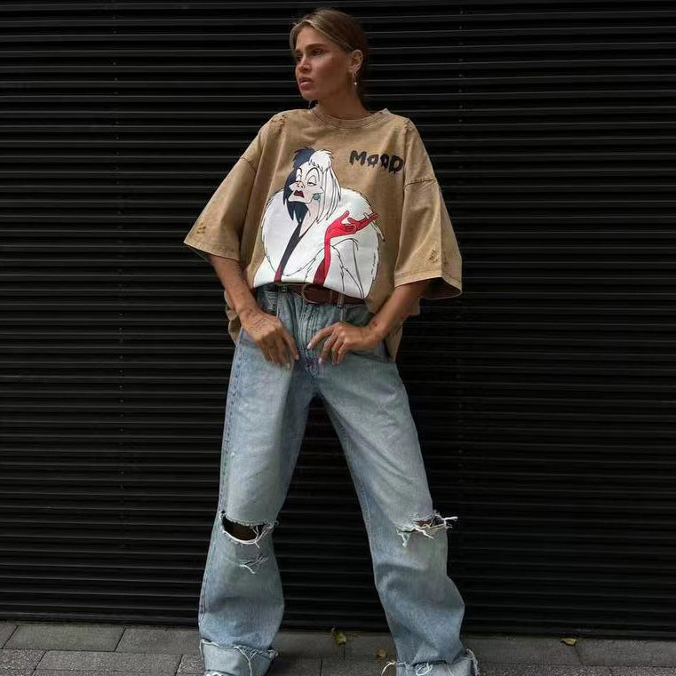 Тази дамска тениска е представител на модерния градски стил, който се отличава с износени ефекти и специално обработка, която му придава уникален и автентичен вид.