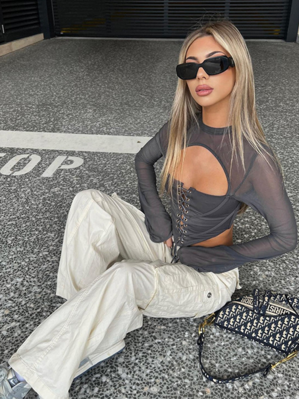 Дизайнът на този топ включва отворен гръб, който придава допълнителен шарм и изисканост на визията. Моделът се характеризира със своето холо изрязване, което добавя уникалност и индивидуалност към външния вид.Този топ е идеален за носене ежедневно. Той предлагат комбинация от удобство и стил, което ги прави подходящи за различни сезонни събития и активности.