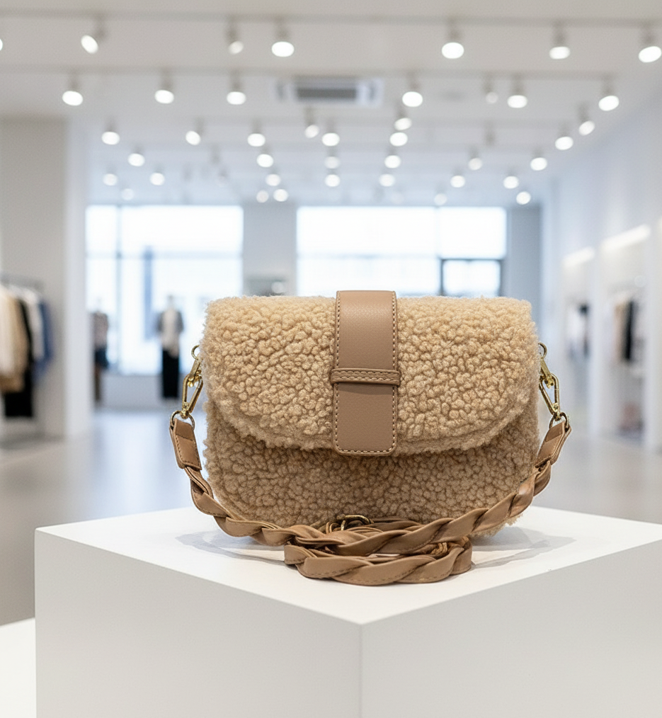 Мекота и елегантност в едно – Teddy Luxe Bag е стилна чанта, вдъхновена от модерната тенденция на пухкавите материи. Изработена от висококачествен еко шърпа материал, комбиниран с кожени детайли и плетена дръжка за повече характер. Идеална за есенно-зимния сезон, тя добавя уютен акцент към всеки тоалет. Предлага се в няколко цвята, за да отговаря на различни стилове и настроения.