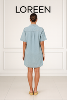 Дамска дънкова рокля с копчета и свободен силует, съчетаваща комфорт и стил. Изработена от мек и устойчив деним, осигурява лекота и удобство през целия ден. Дизайнът с копчета по цялата дължина придава модерен акцент, а свободната кройка я прави подходяща за всякакви поводи. Лесна за комбиниране с кецове или сандали за небрежна визия.