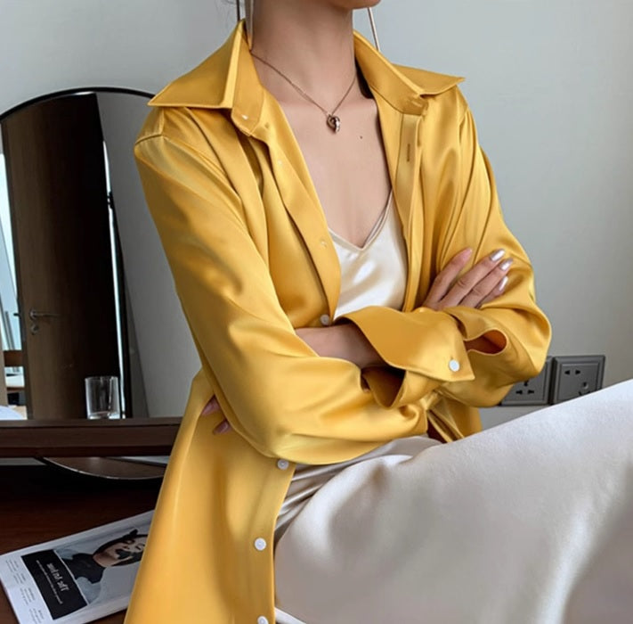 Ризата е изработена от ацетатен сатен, който е познат с изключителната си мекота и луксозен вид. Този материал осигурява изключително усещане за комфорт и е приятен за носене върху кожата.