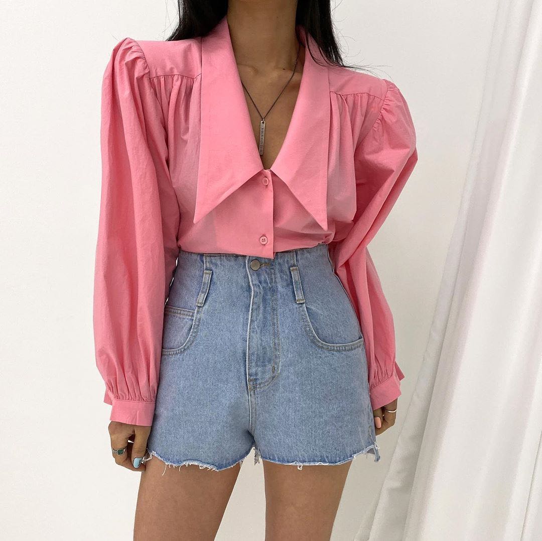 Тази риза е наистина нещо специално - съчетавайки ретро вдъхновение със съвременен стил, тя предлага уникален и изразителен външен вид. Главният акцент на ризата е нейният необичаен сладък цвят, който придава изключителен характер и индивидуалност на тоалета.