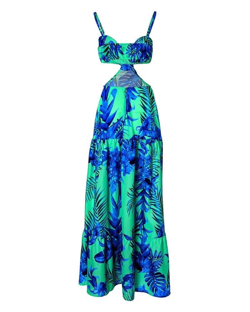 Представяме ви тази прекрасна рокля с изрязани детайли и декоративни връзки, украсена с тропически принт, която ще ви отведе на модно пътешествие към екзотичните дестинации. Тази рокля е съчетание от свежест, стил и женственост, перфектен избор за летните дни.