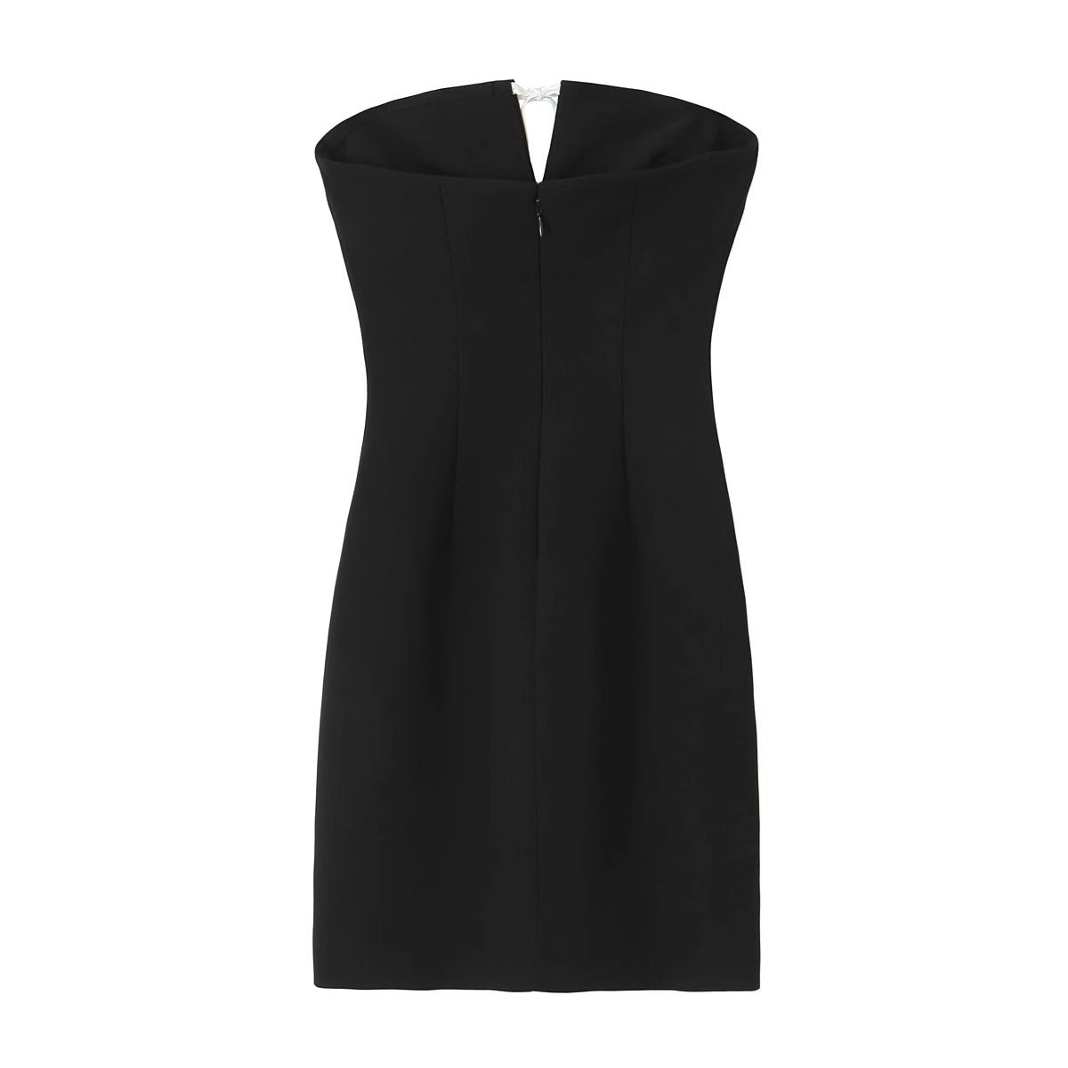 Тази черна къса рокля по тялото е перфектен пример за класическа елегантност, комбинирана с модерен акцент. Нейният семпъл дизайн се подчертава от контрастната бяла панделка, добавяйки нотка на изтънченост и стил.,