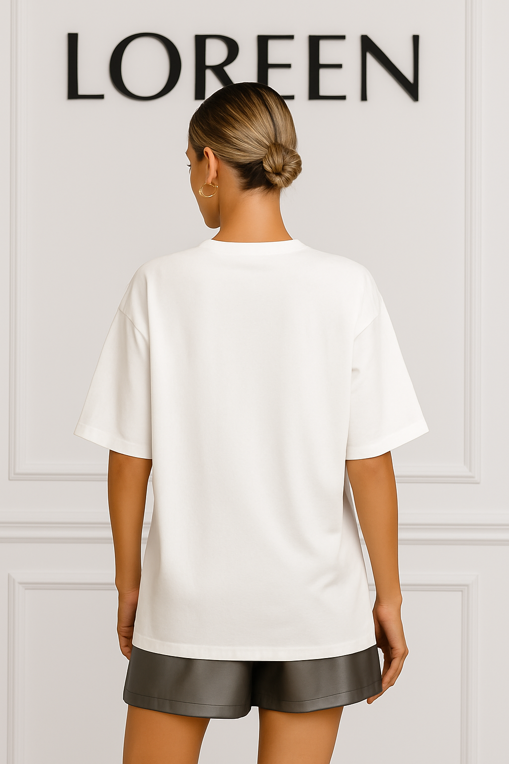 Откройте се със стил с тази впечатляваща тениска, вдъхновена от елегантния силует на корсета. Със специални декоративни шевове и внимателно изработени детайли, тениската създава илюзията за корсет, комбинирайки класическа женственост с модерен комфорт.