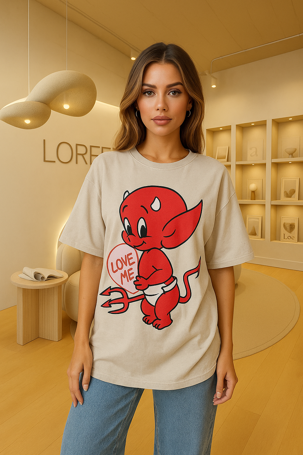 Дизайнът с дяволски принт придава на тениската изключително впечатляващ и екстравагантен вид. Изразявайки се чрез изкушаващ мотив, тази тениска добавя доза смела енергия към вашия стил.