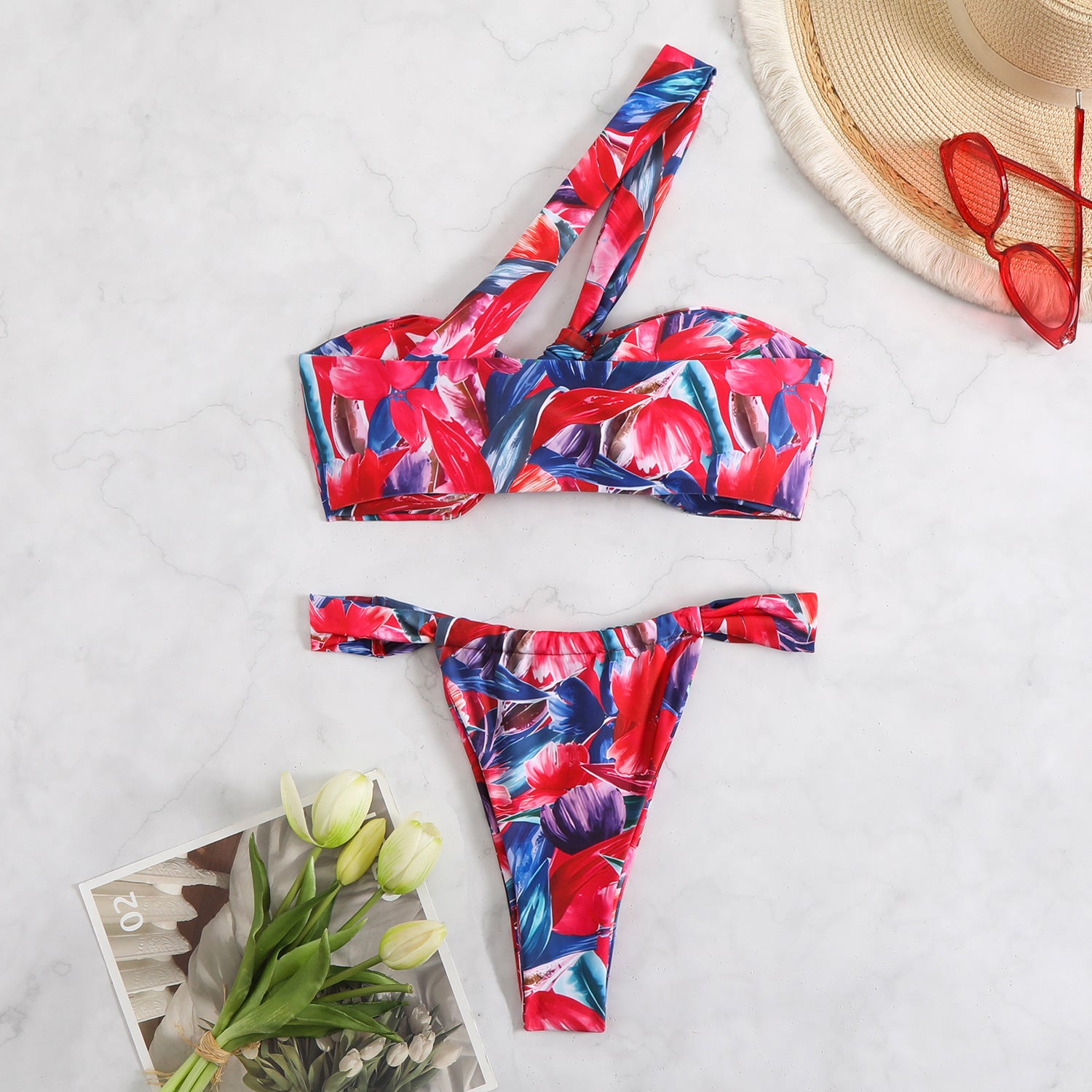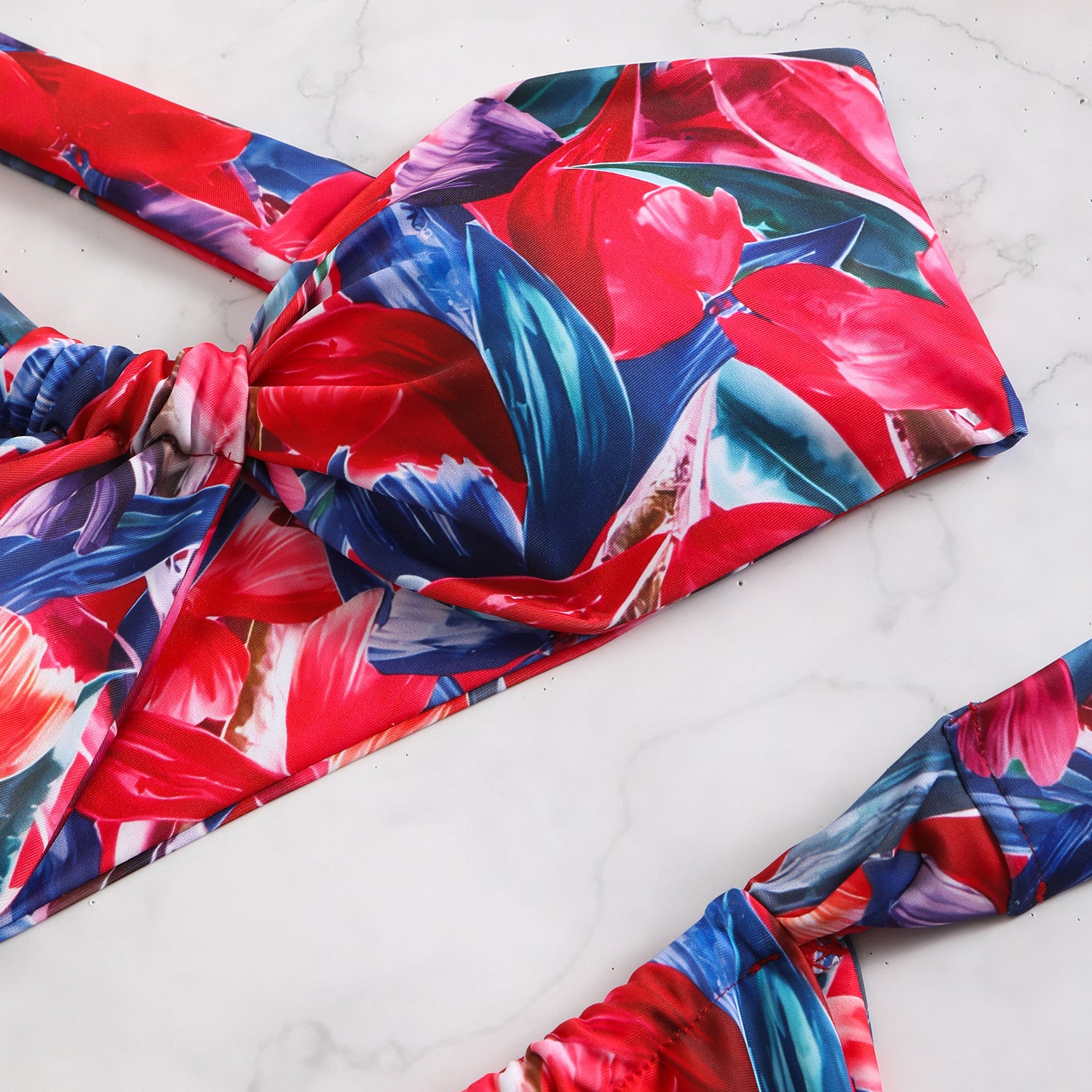 Стилен дамски бански от две части, изработен от висококачествена, бързосъхнеща материя. Осигурява удобство и перфектно прилягане, подчертавайки женствената фигура.