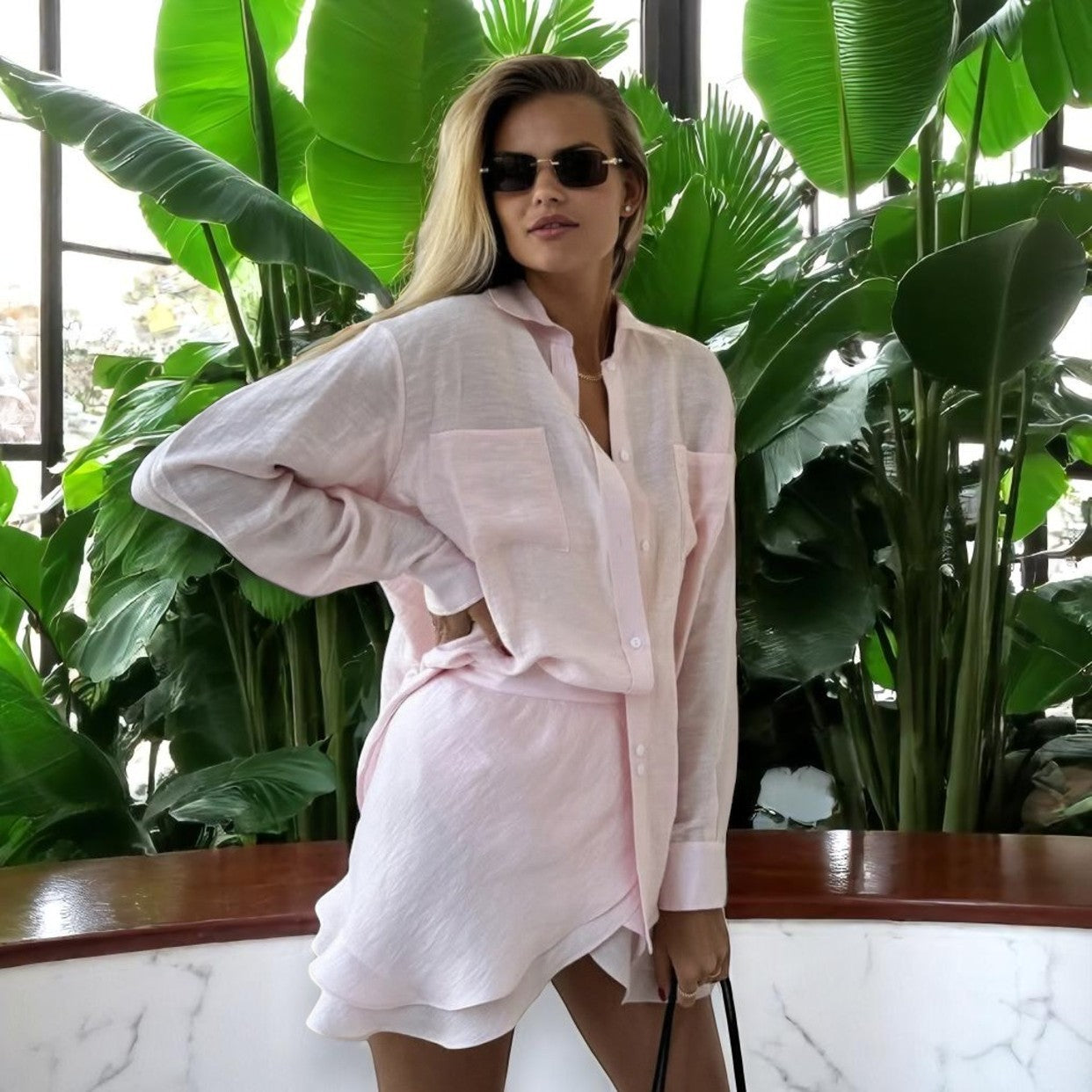 Нежен, дишащ и безупречно елегантен – „Blush Linen“ е комплект, който въплъщава лятната лекота и модерния минимализъм. Създаден от ефирна материя в деликатно розово, той съчетава удобство и стил с effortless усещане. Перфектен за горещи дни, плажни градски визии или изискан следобед край басейна.