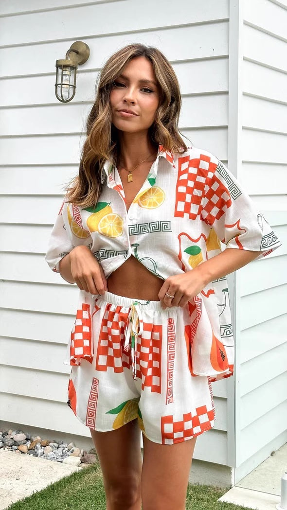 Комплекта е декориран със стилни принтове, които придават уникален вид на визията. С ризата добавя изтънченост и класа към облеклото, а дължината и го прави идеален за комбиниране с панталони, поли и дрехи с висока талия.