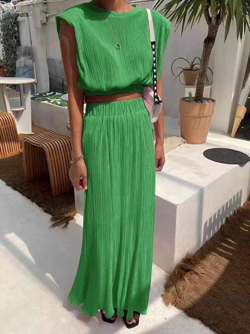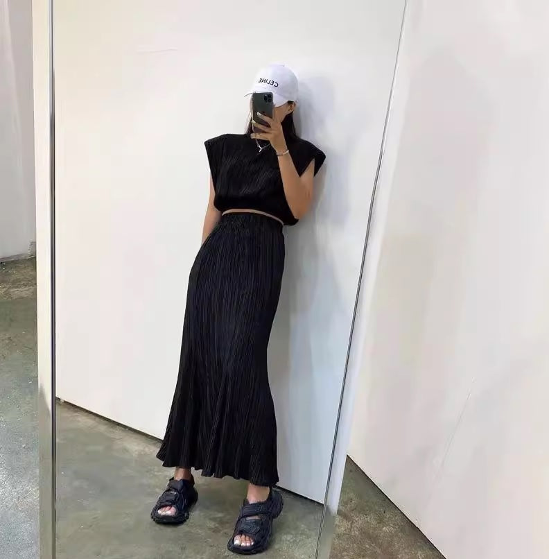 Полата е с плисиран дизайн, който е символ на елегантност и женственост. Плисетата добавят обем и движение към облеклото, като придават лекота и въздушност на цялостната визия.